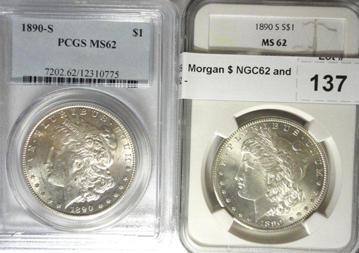 2 1890S Morgan $ NGC62 and PCGS62