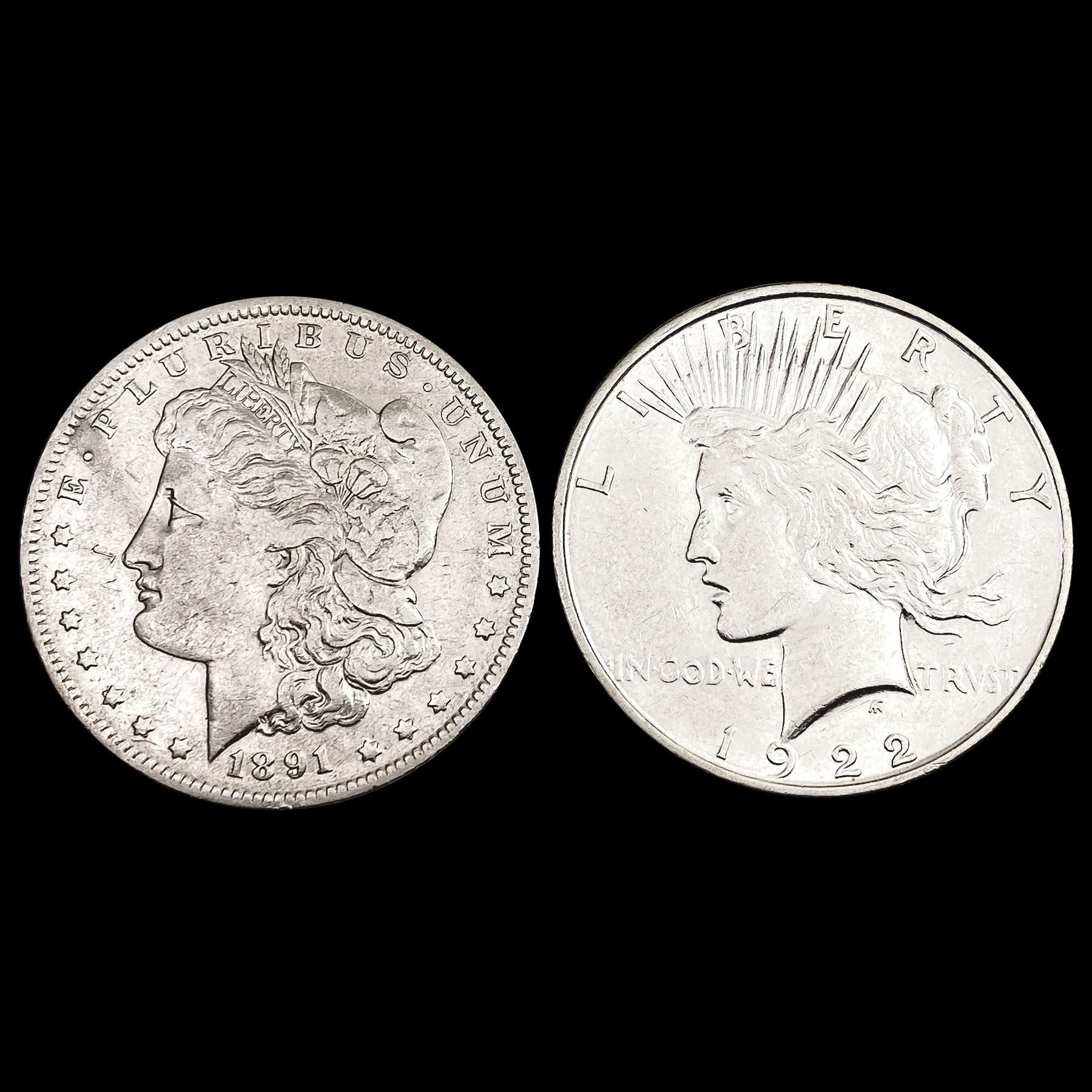 [2] 1891-O&1922-D U.S. Silver Dollars CLOSELY UNCIRCULATED