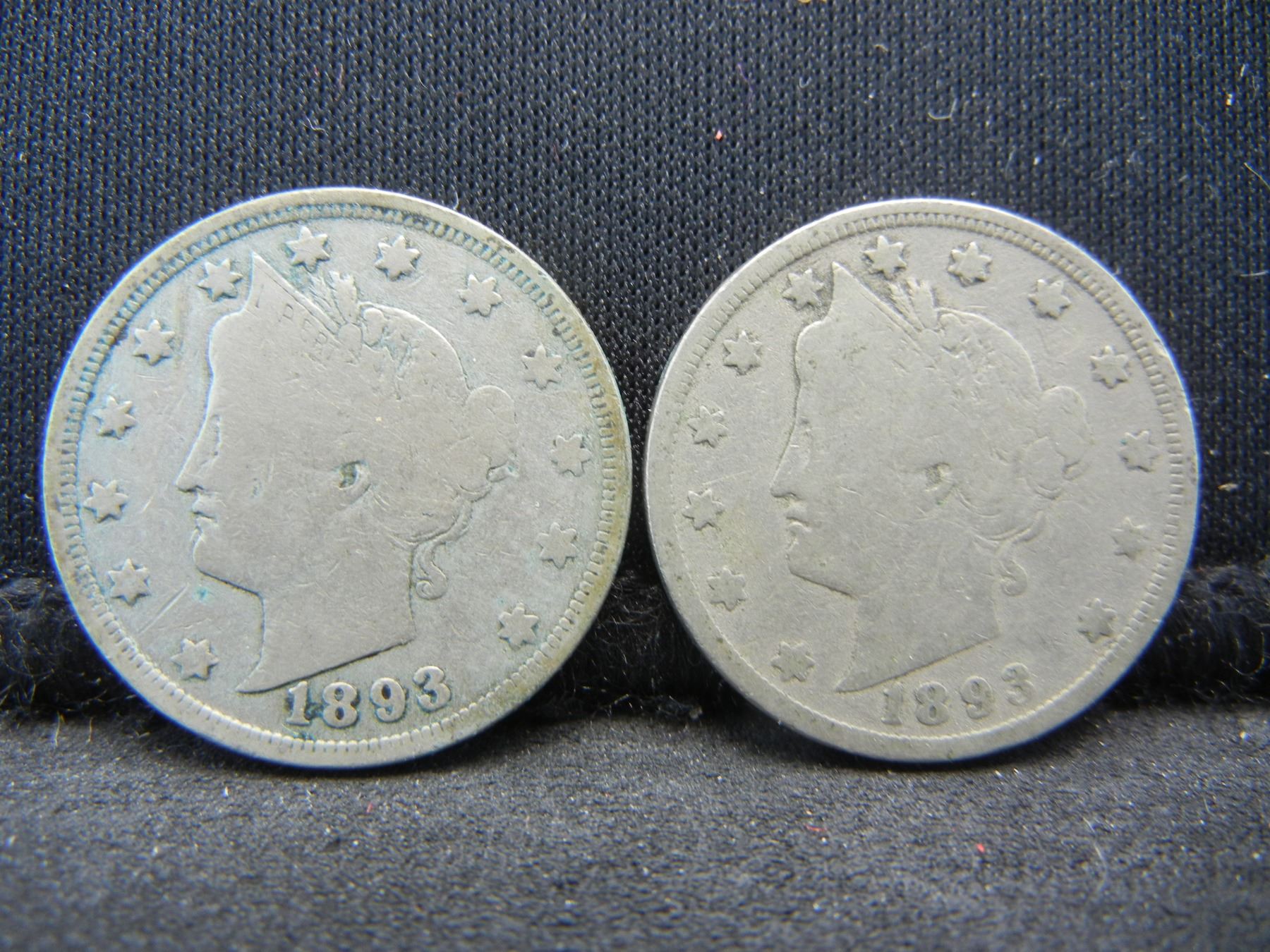 (2) 1893 Liberty Nickels VG/F Semi Key Date