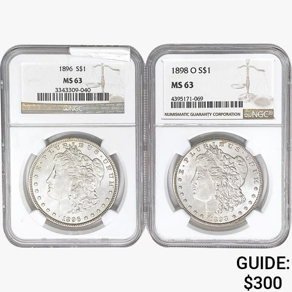[2] 1896 & 1898-O Morgan Silver Dollar NGC MS63