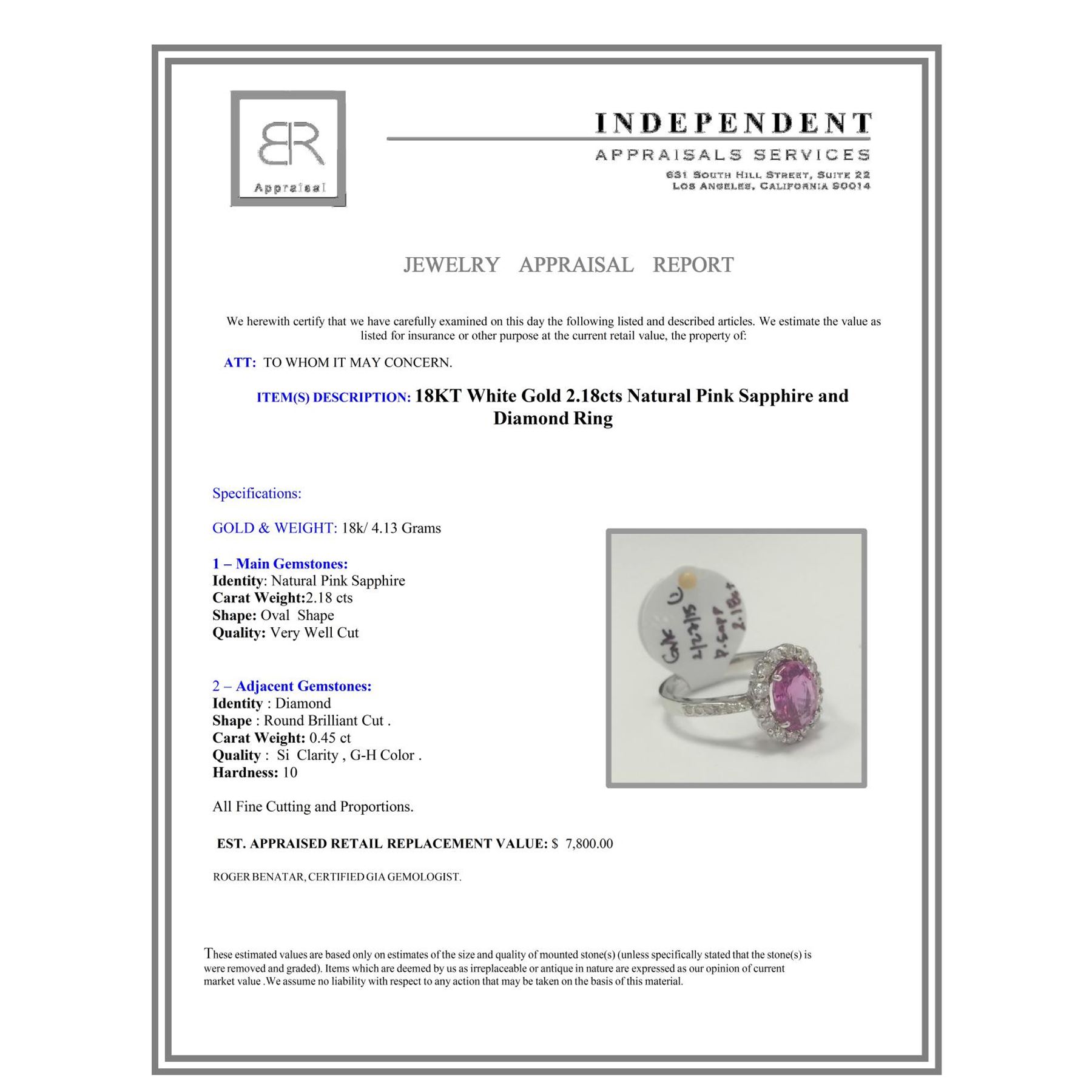 18K W/G NATURAL PINK CEYLON SAPPHIRE RING :4.13GRAM /PINK CEYLON SAPPHIRE :2.18CT/DIA :0.45CT /#GVR1356