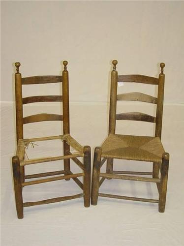 (2) 18TH CENT. SOUTHERN MAPLE and ASH LADDERBACK SIDE CHAIRS W/ ROUND FINIALS (PROBABLY VIRGINIA) - WORN FINISH, IMPERFECTIONS;