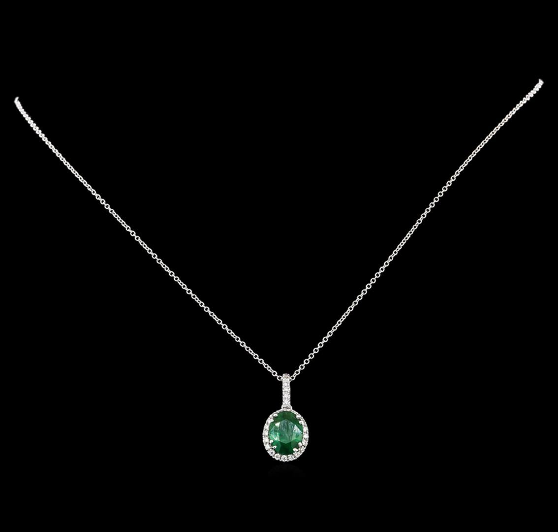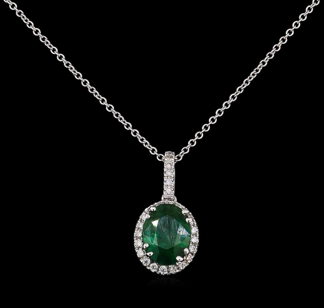 One Pendant with chain: 14KT white gold containing one emerald with a total weight of 2.19ct and diamonds weighing 0.2ctw.