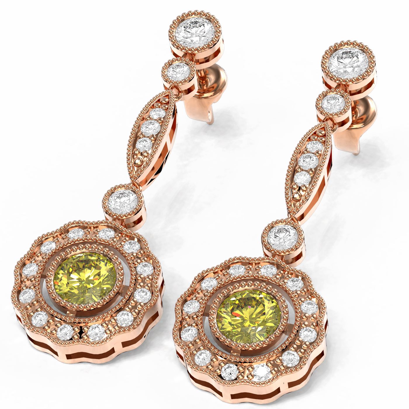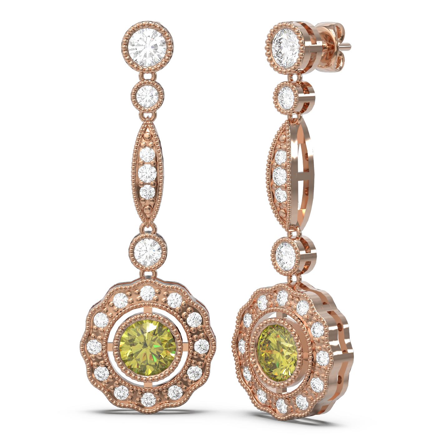 REF-267W6H - SKU: 60027 ---- 2.19 ctw Fancy Yellow Diamond Earrings 18K Rose Gold