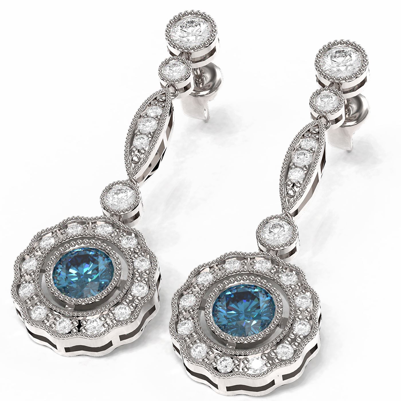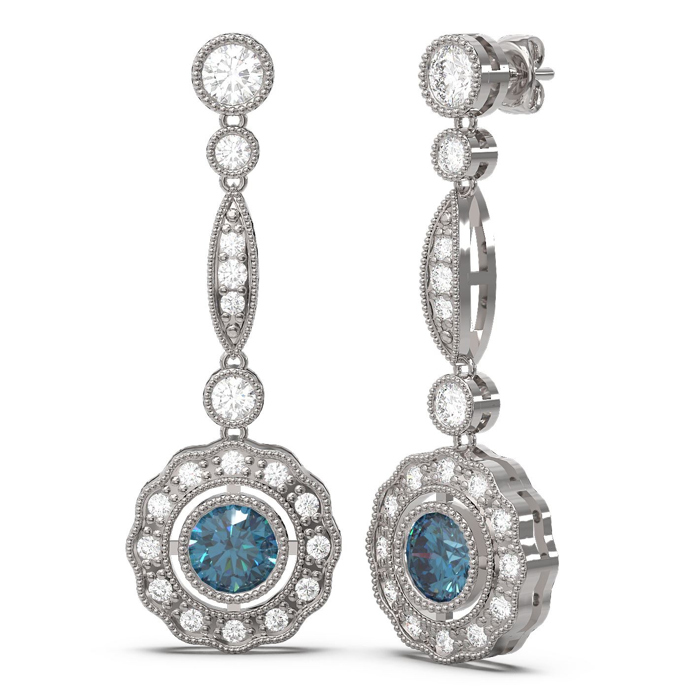 SKU: 60023 ---- 2.19 ctw Intense Blue Diamond Earrings 18K White Gold