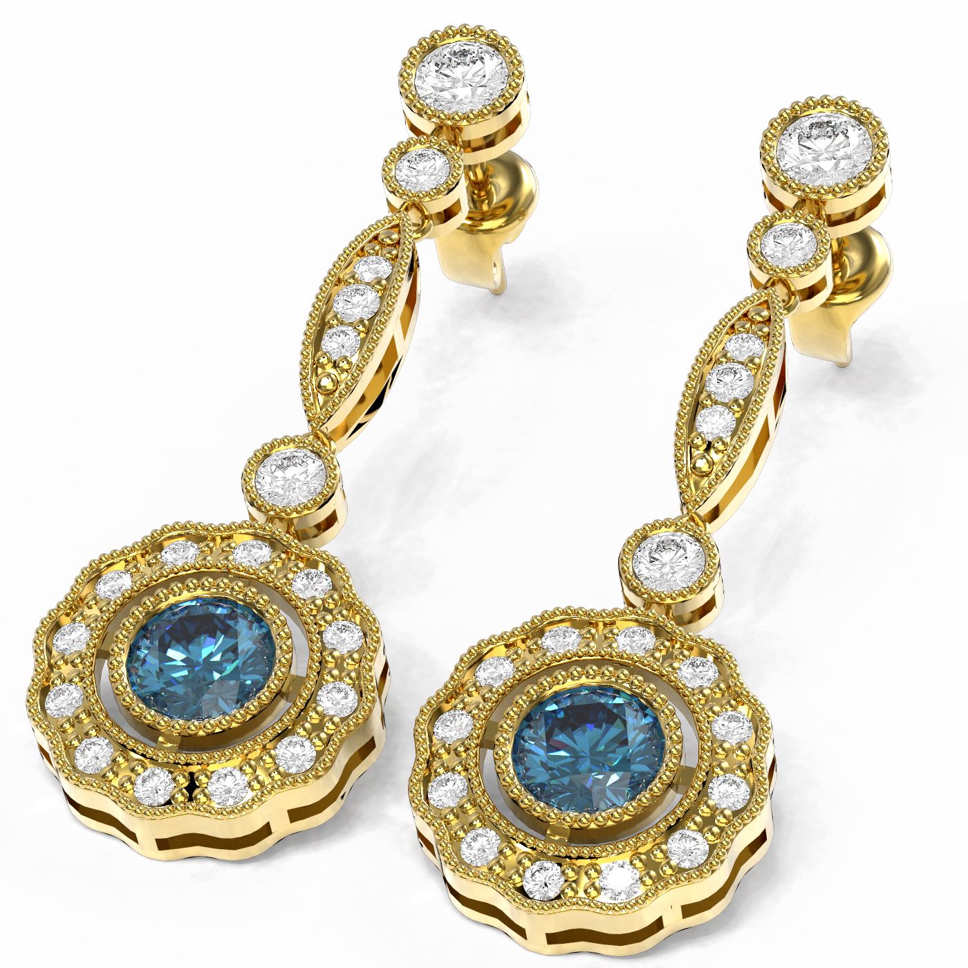 REF-222X2A - SKU: 60025 ---- 2.19 ctw Intense Blue Diamond Earrings 18K Yellow Gold
