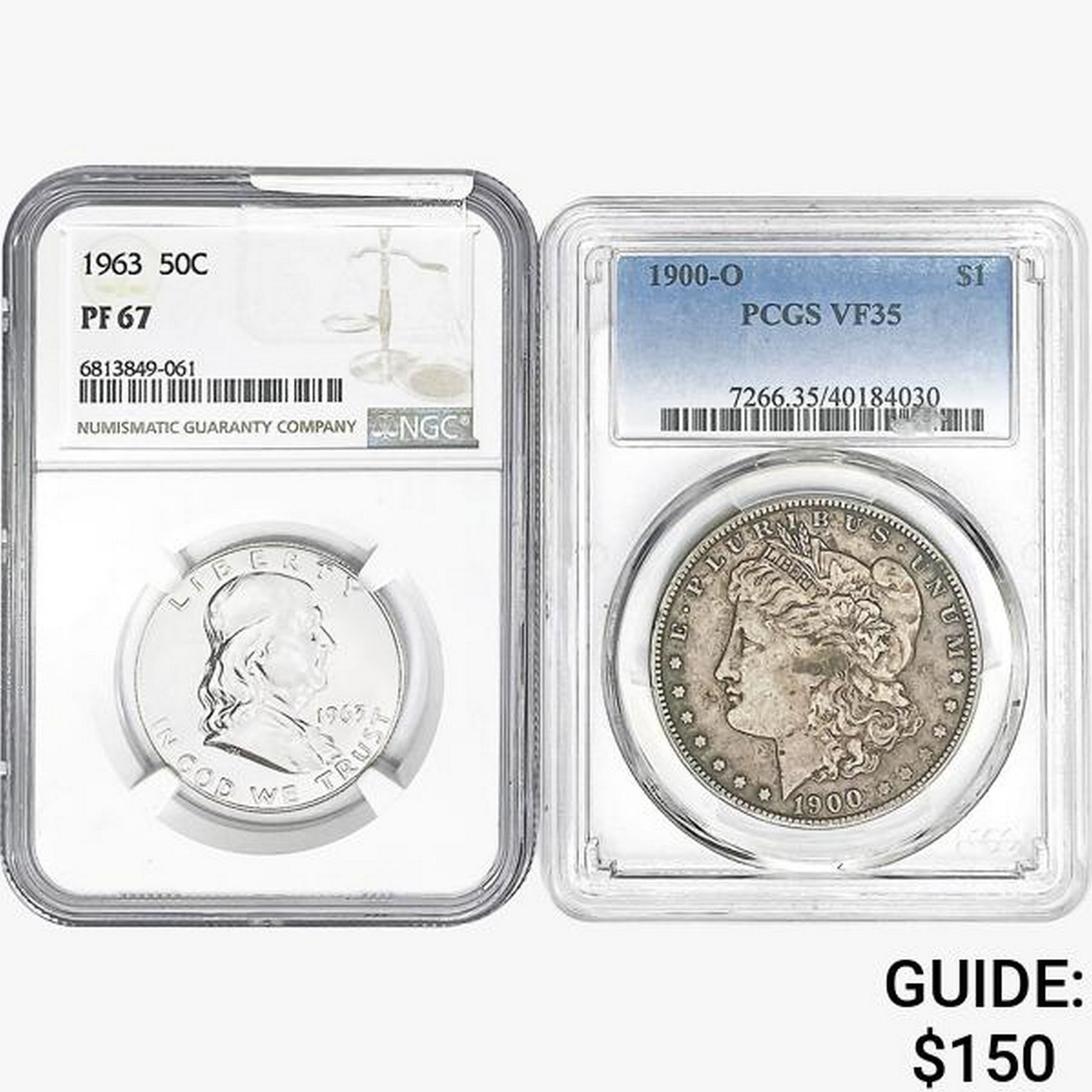 [2] 1900-O&1963 1 50C, 1 $1 NGC/PCGS VF/PF