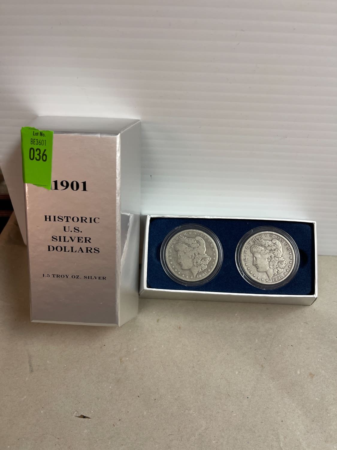 2 1901 Historic U.S. Silver Dollars. This is from a lifetime private collection , owner is in his 80's. This is from a lifetime private collection , owner is in his 80's.