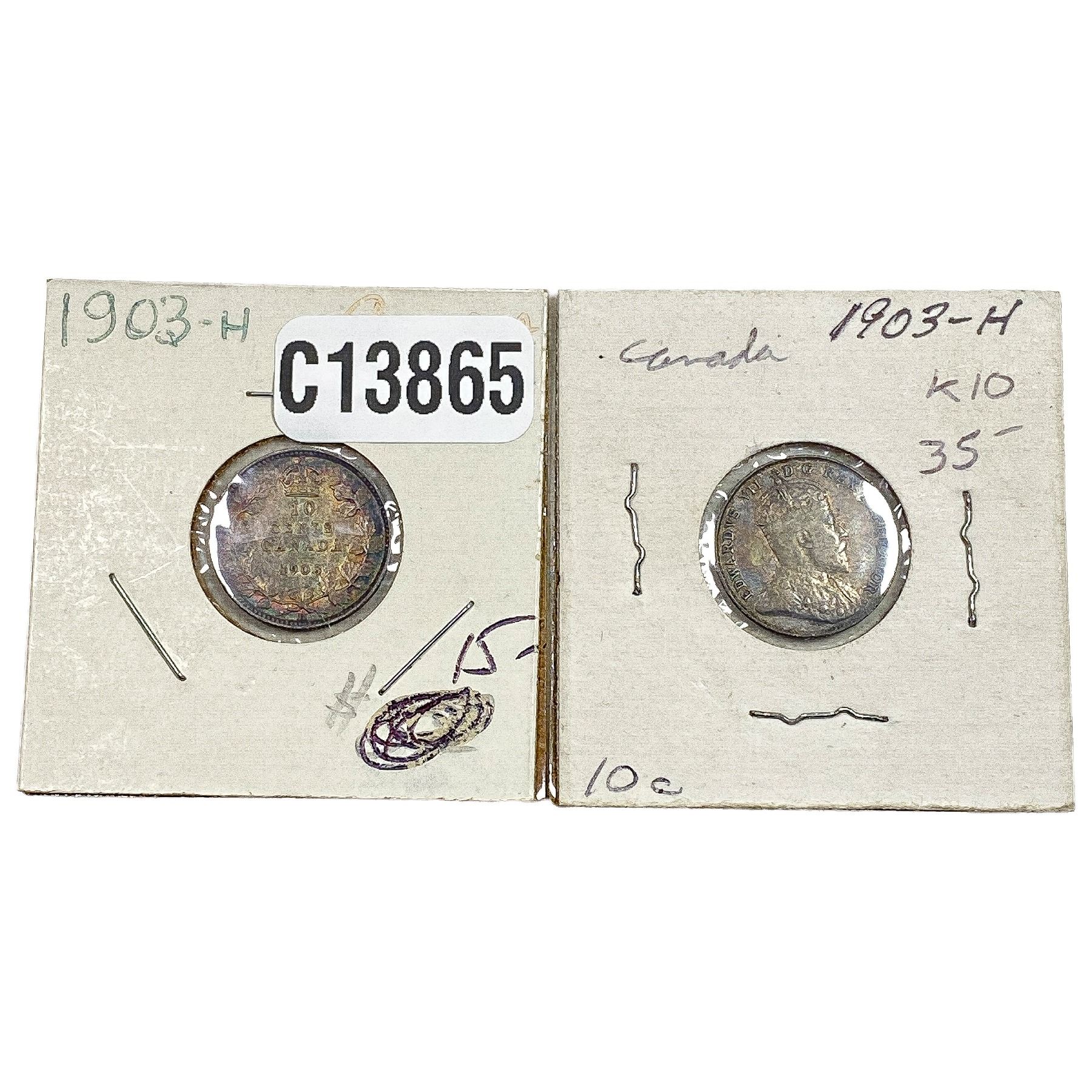 [2] 1903-H Better Date Canada Dime [2 Coins] XF