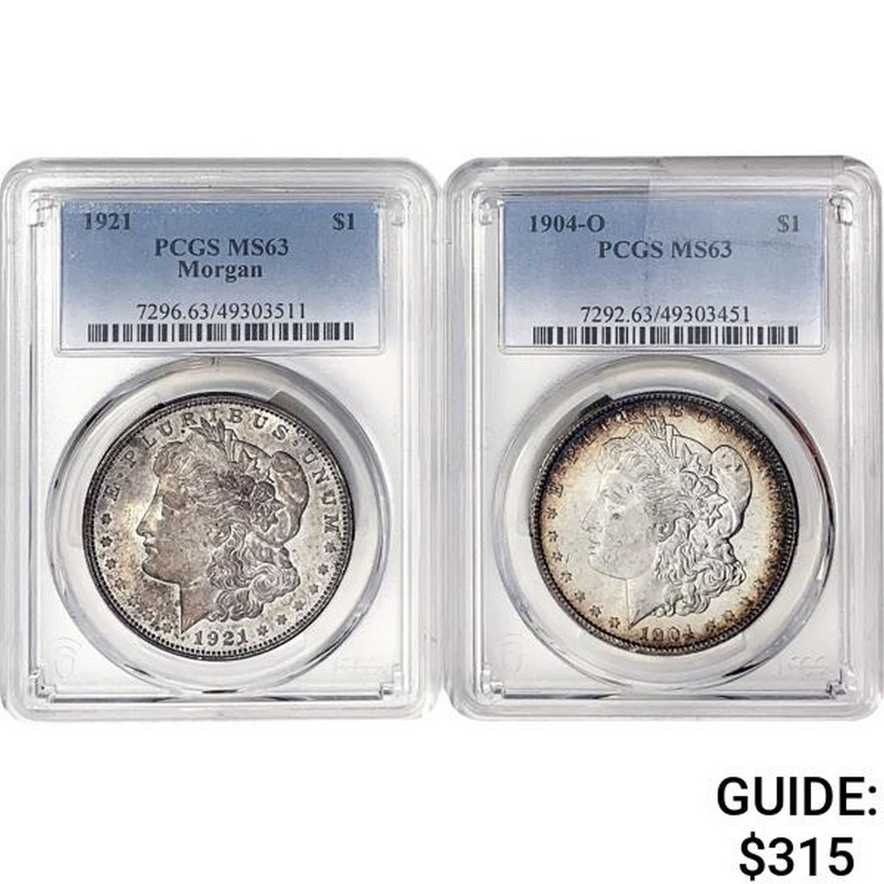 [2] 1904-O&1921 Morgan Silver Dollar PCGS MS63