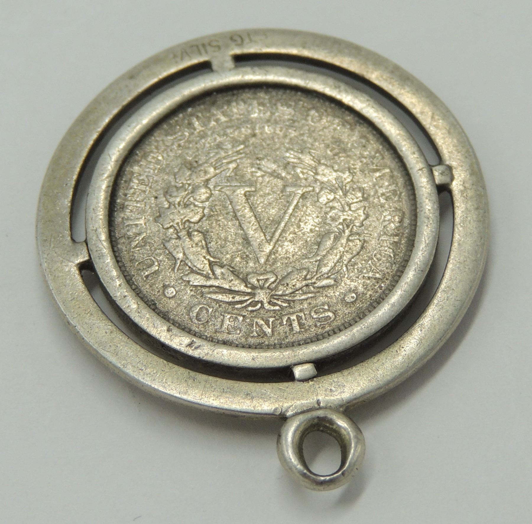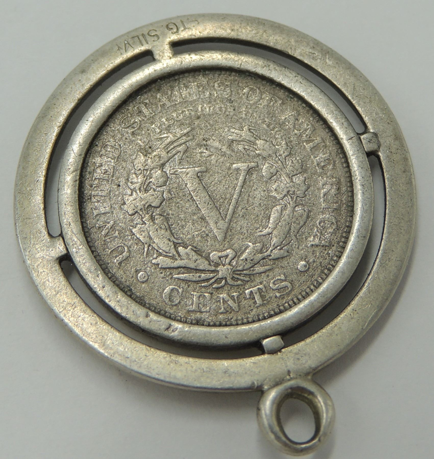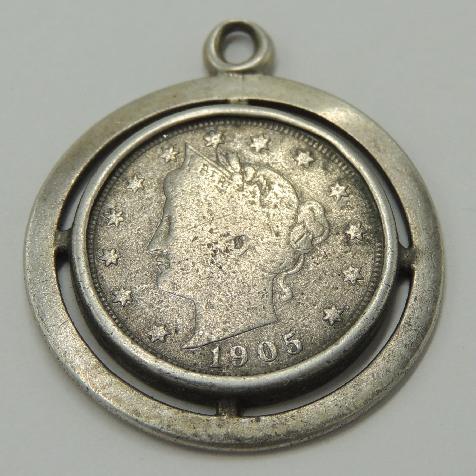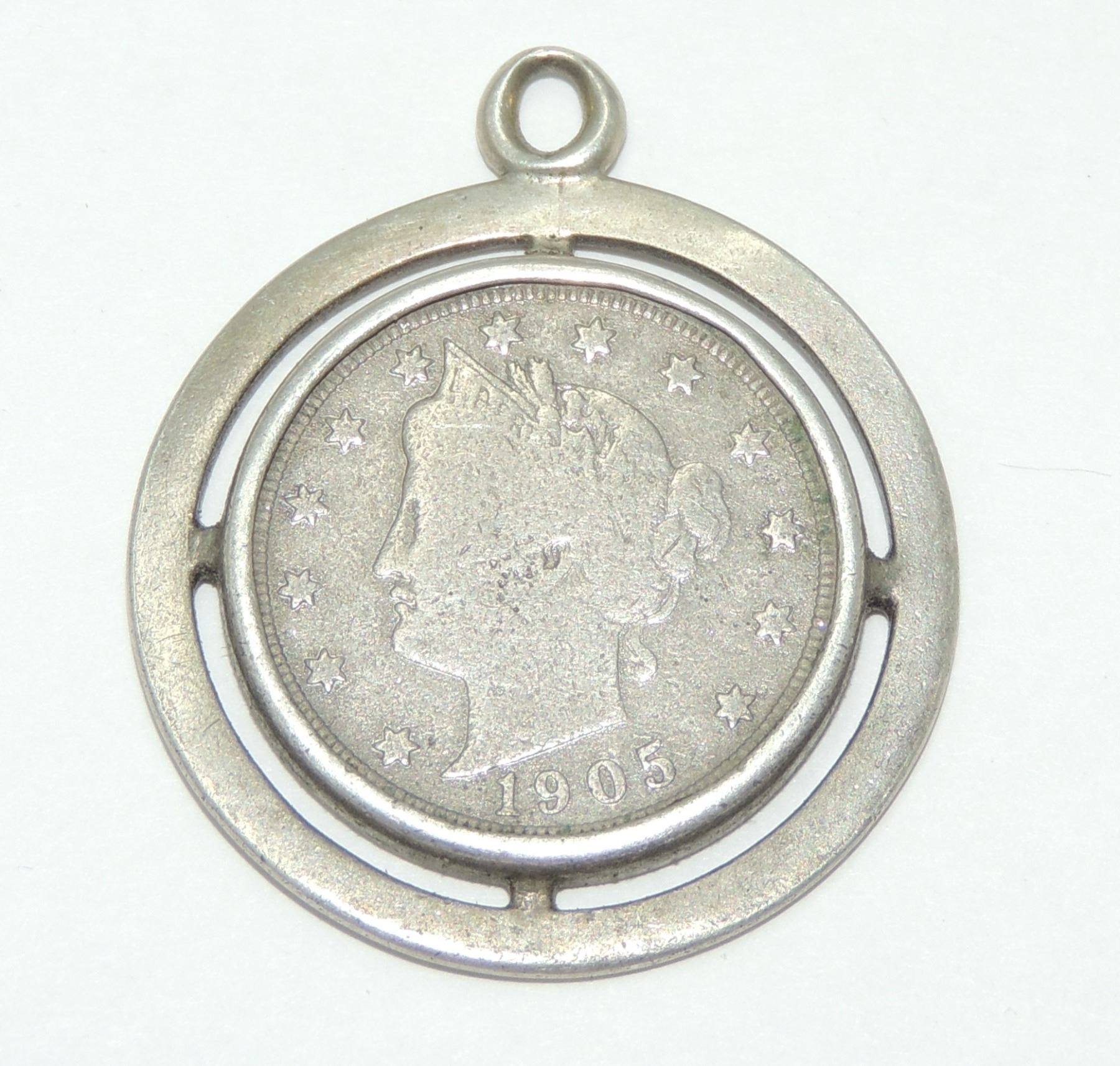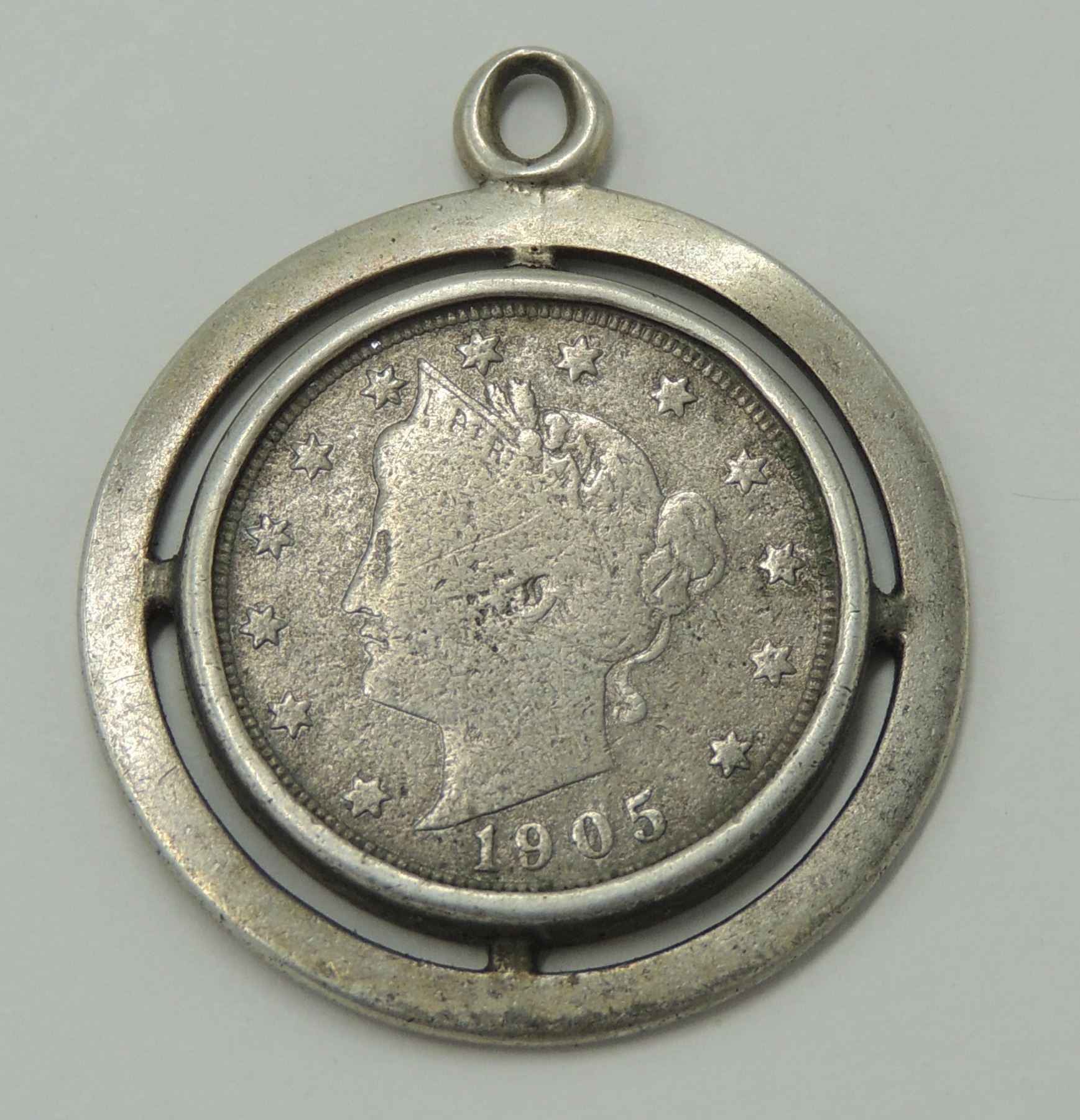 EARLY UNITED STATES OF AMERICA LIBERTY HEAD NICKEL TURNED INTO PENDANT VINTAGE JEWELRY FASHION