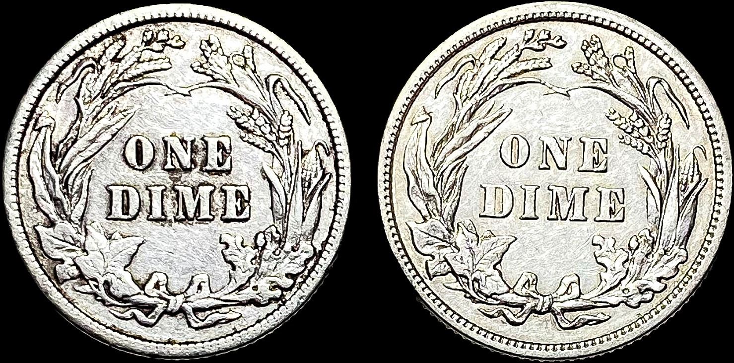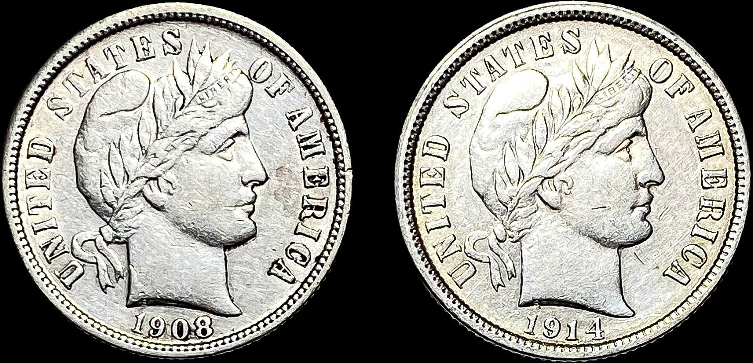 [2]1908 & 1914 Silver Barber Dimes CLOSELY UNCIRCULATED