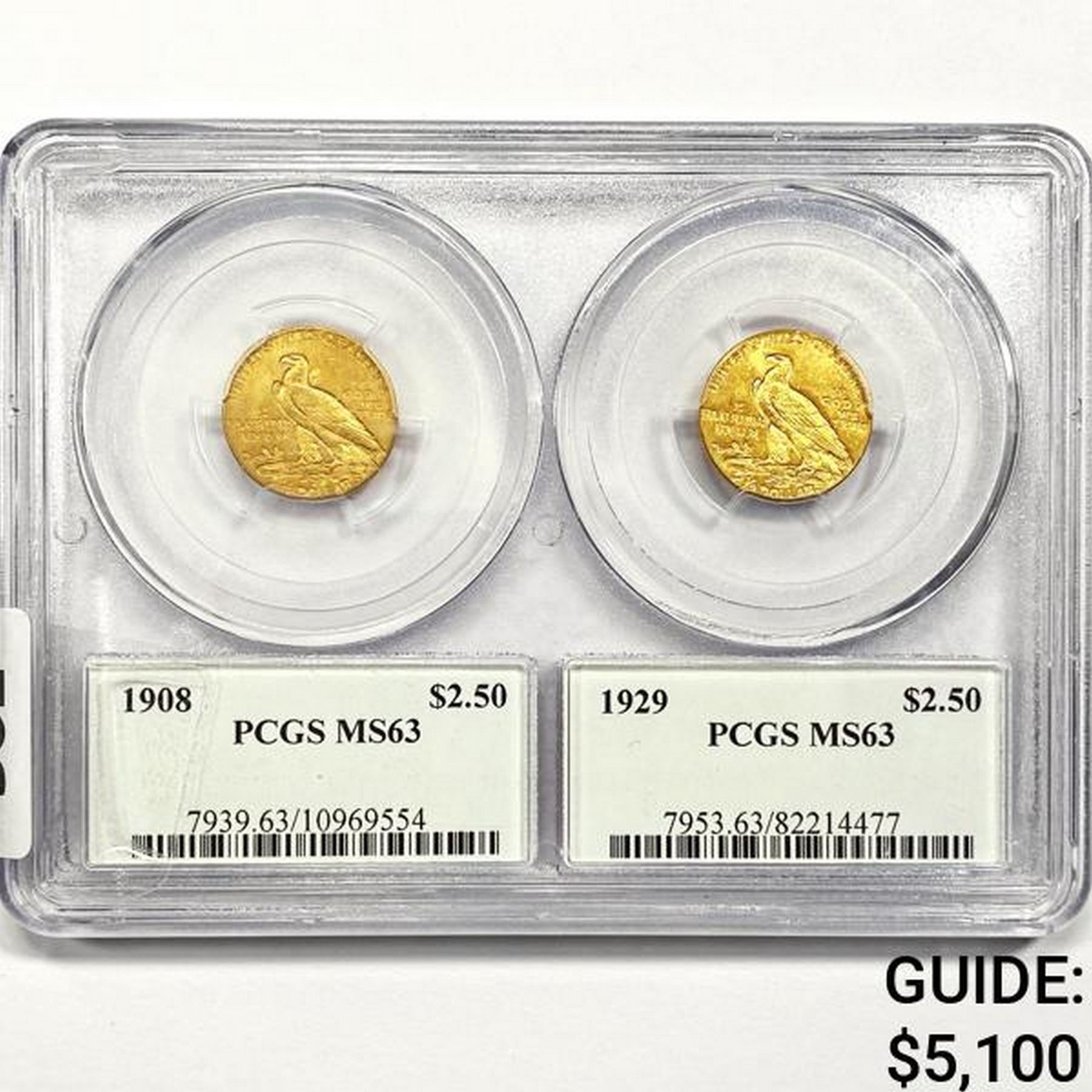 (2) 1909&29 Lyon Pratt $2.5 Gold Set PCGS MS63