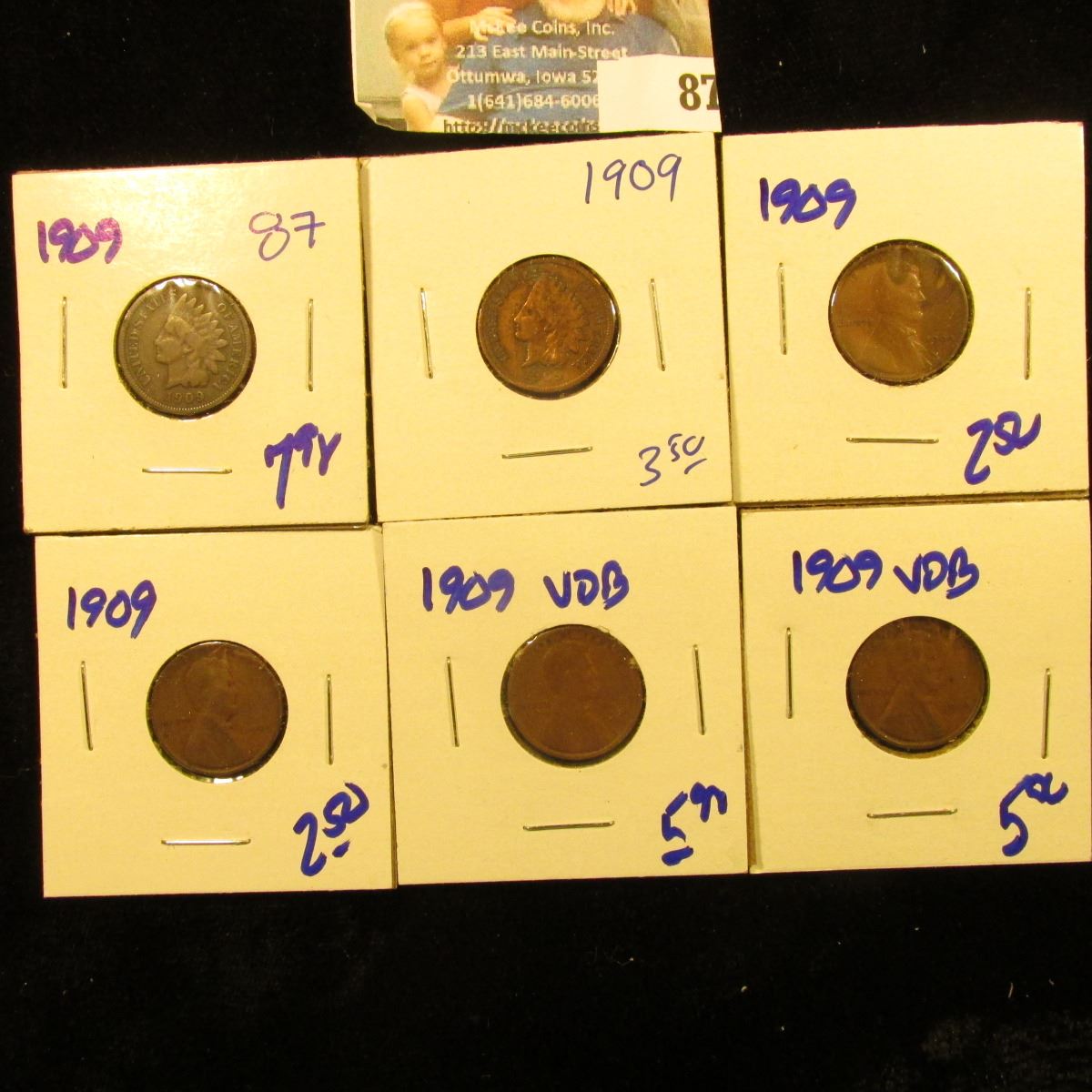 2 1909 VDB WHEAT PENNIES, 3 1909 WHEAT PENNIES. AND 1909 INDIAN HEAD PENNY