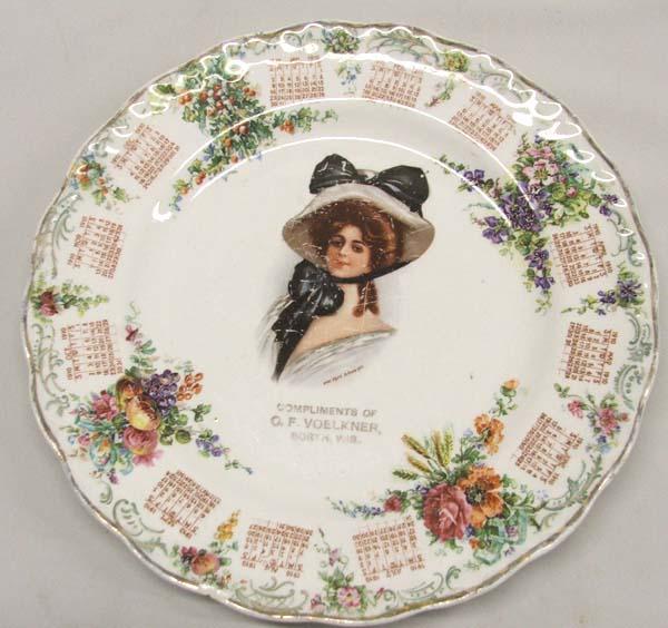2-1910 Collector Advertising Calendar Plates. Measure approx. 9''Diameter. 1. Carnation McNichol Fruit & Flower Calendar Plate. 1.C Carnation McNichol Gibson Girl Calendar Advertising Plate, compliments of O.F. VoelKner Borth, Wis. Buyers Pay Actual Shipping and Handling Charges(see terms and conditions for more information).