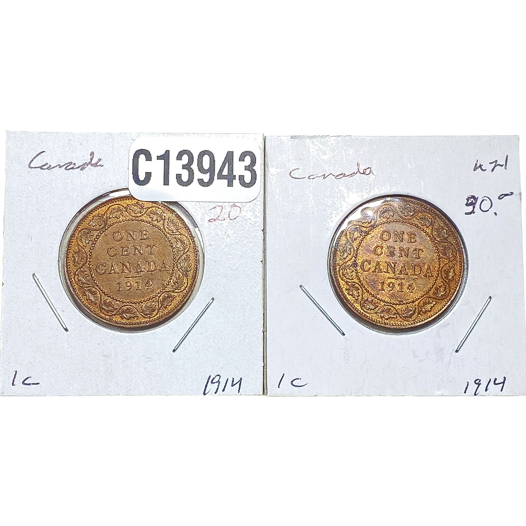 [2] 1914 Canada Large Cents [2 Coins] MS