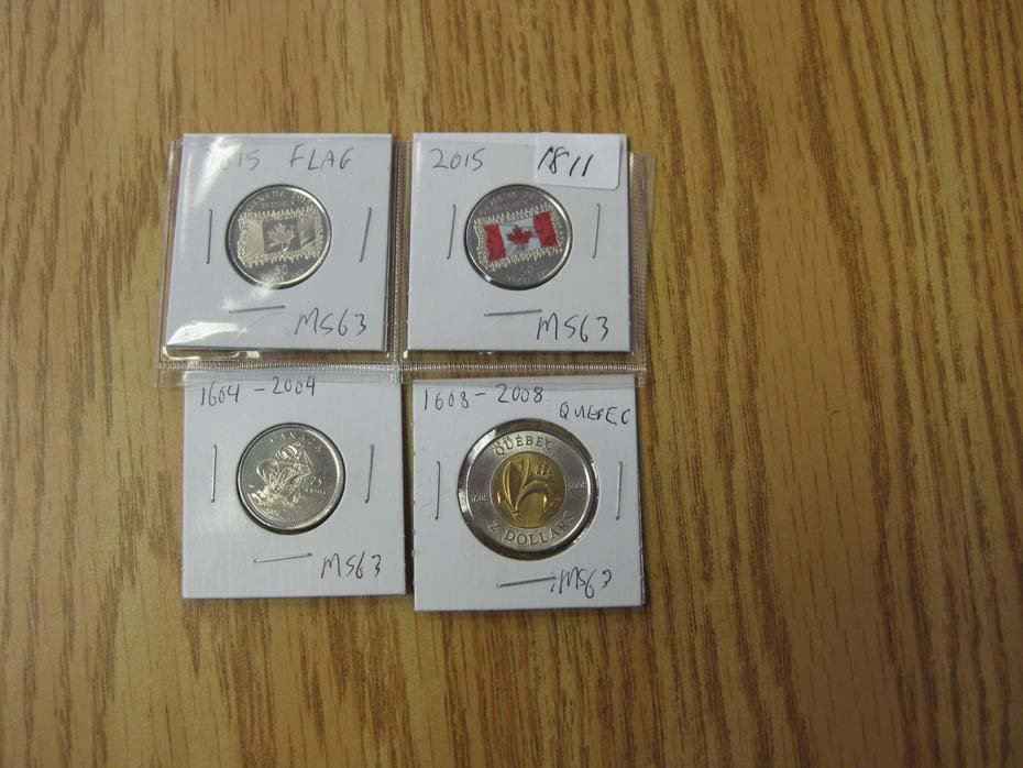 2-1915 Flag Quarters/1604 -2004 Quarter/1608-2008 Quebec Toonie