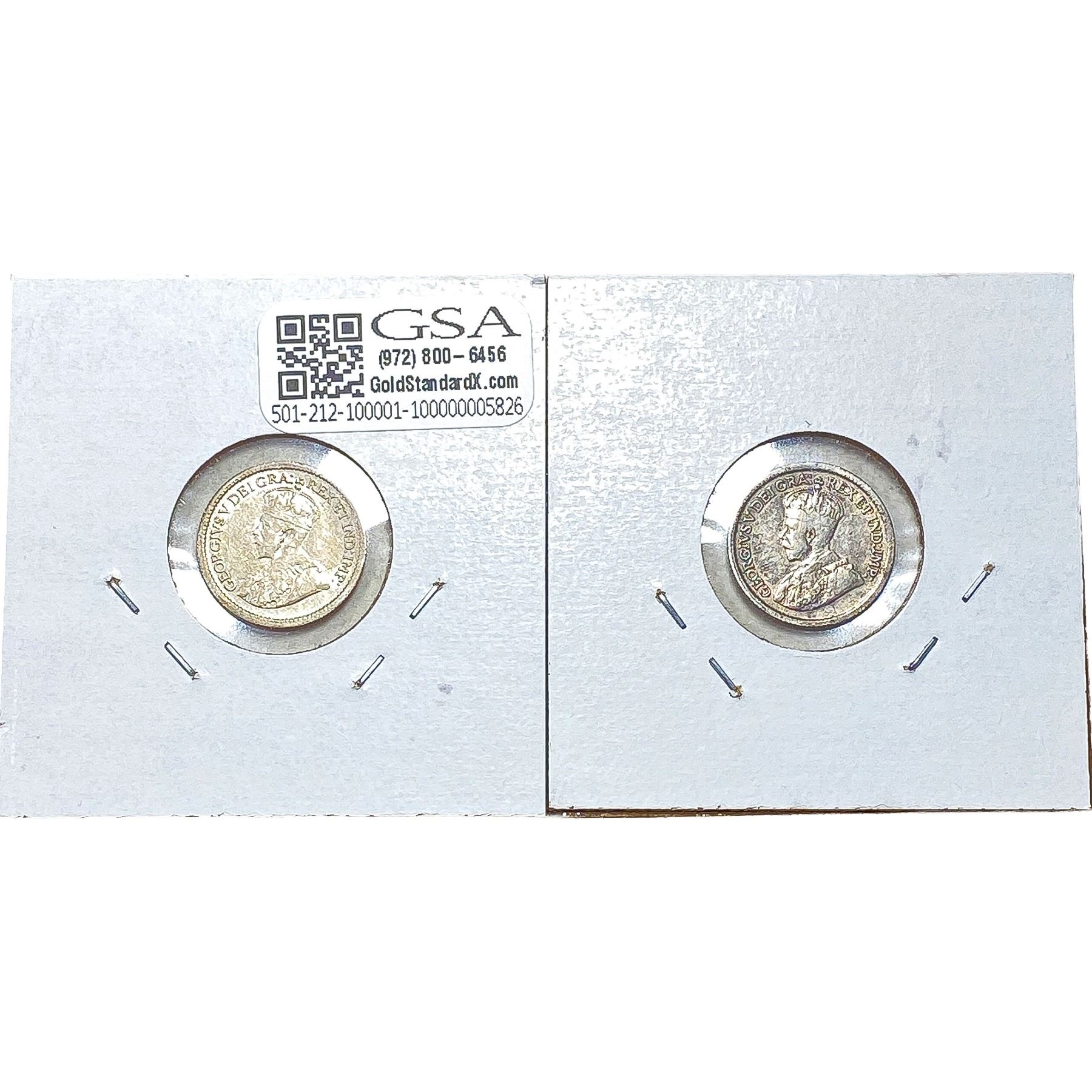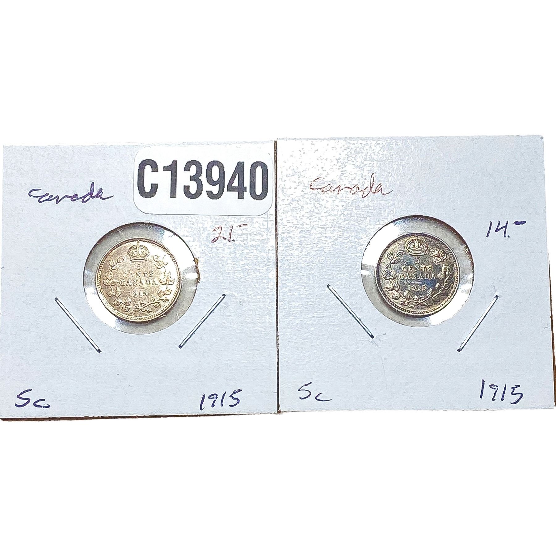 [2] 1915 KEY DATE Canada 5 Cent Silver [2 Coins]