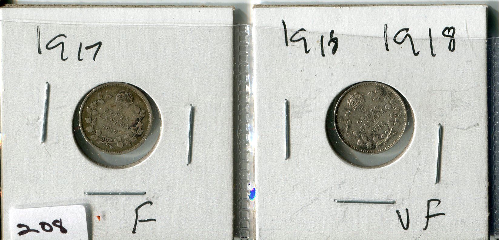 2 - 1917 & 1918 CNDN SMALL NICKELS (SILVER)