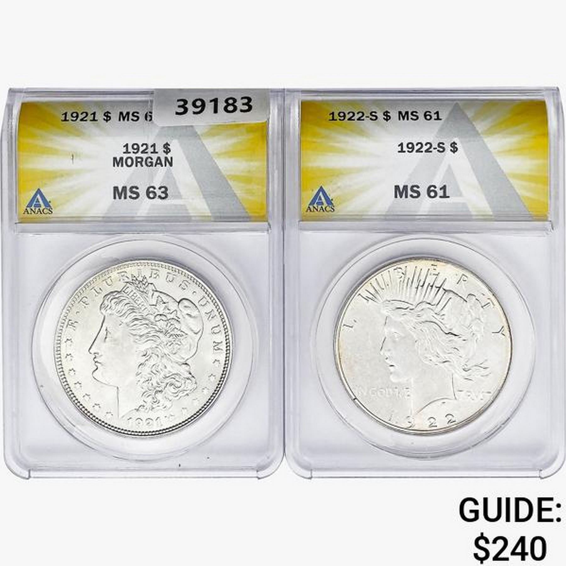 [2] 1921&1922-S Silver Dollars ANACS MS