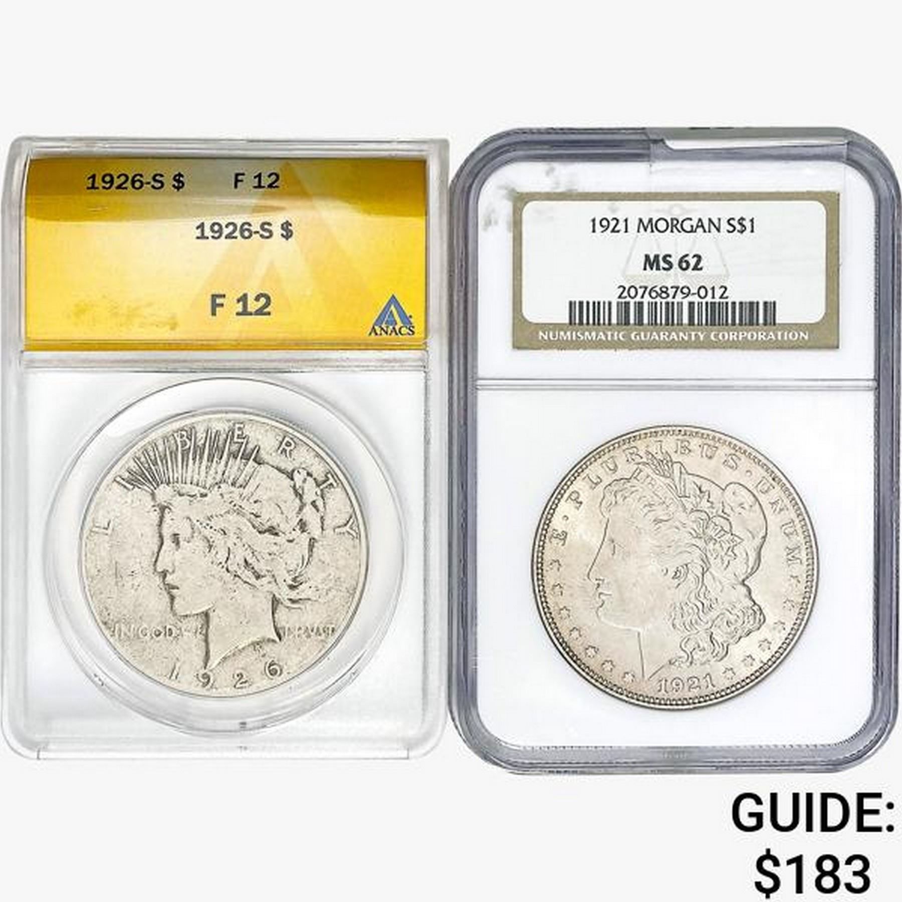 [2] 1921&1926-S Silver Dollars NGC/ANACS F/MS