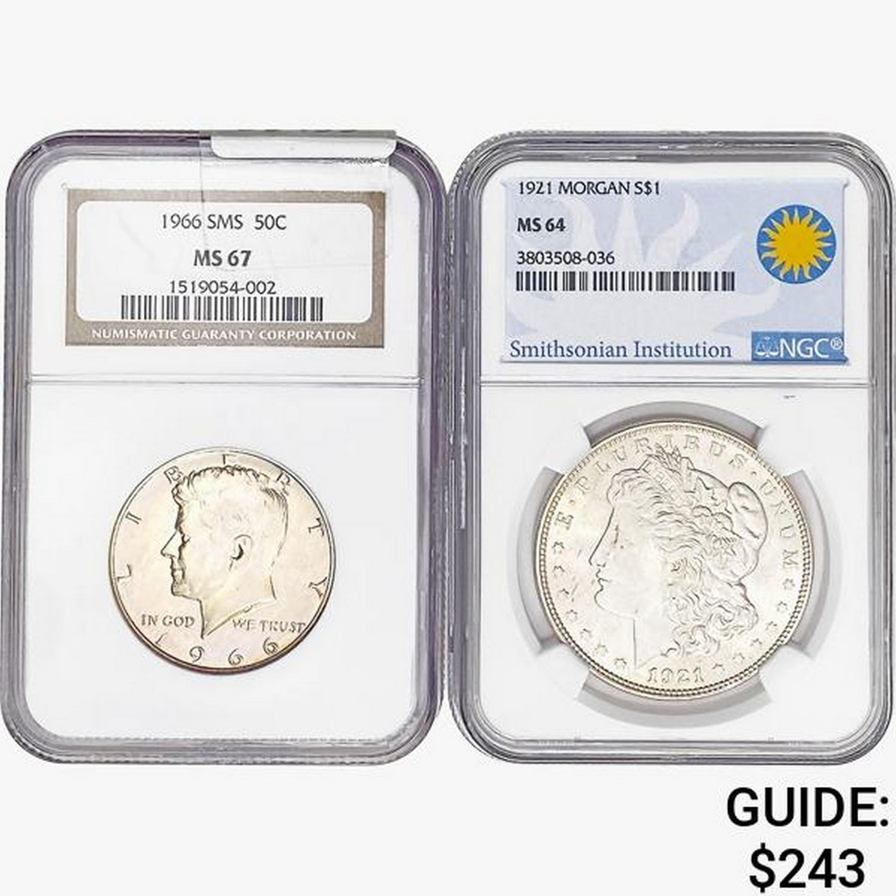 [2] 1921&1966 1 50C, 1 $1 NGC MS