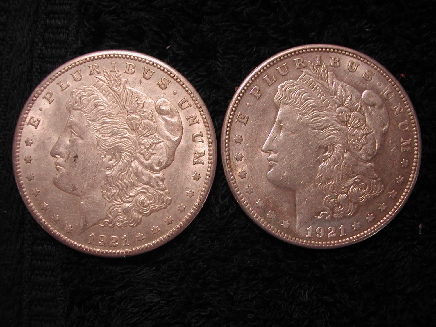 2 1921 S MORGAN DOLLARS (ONE MONEY)