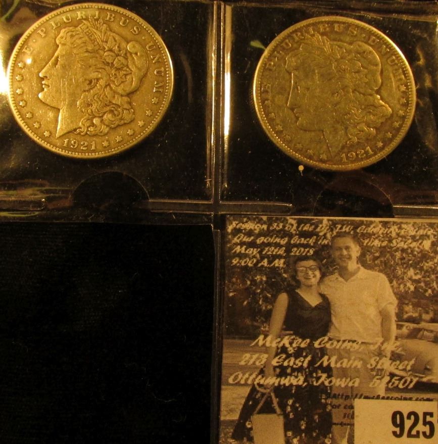 (2) 1921 S U.S. Morgan Silver Dollars, Fine to VF.
