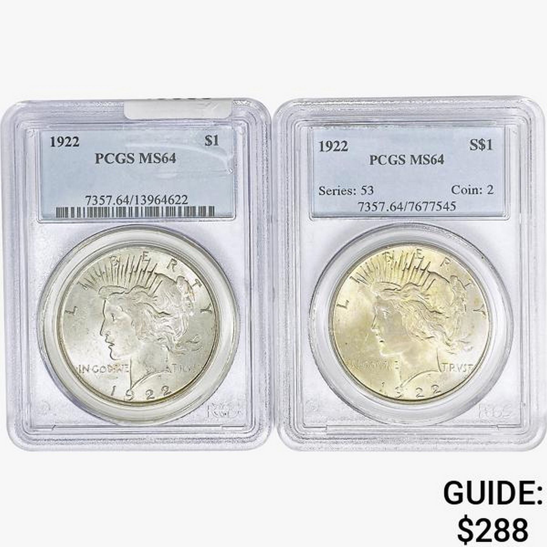 [2]1922 Silver Peace Dollar PCGS MS64