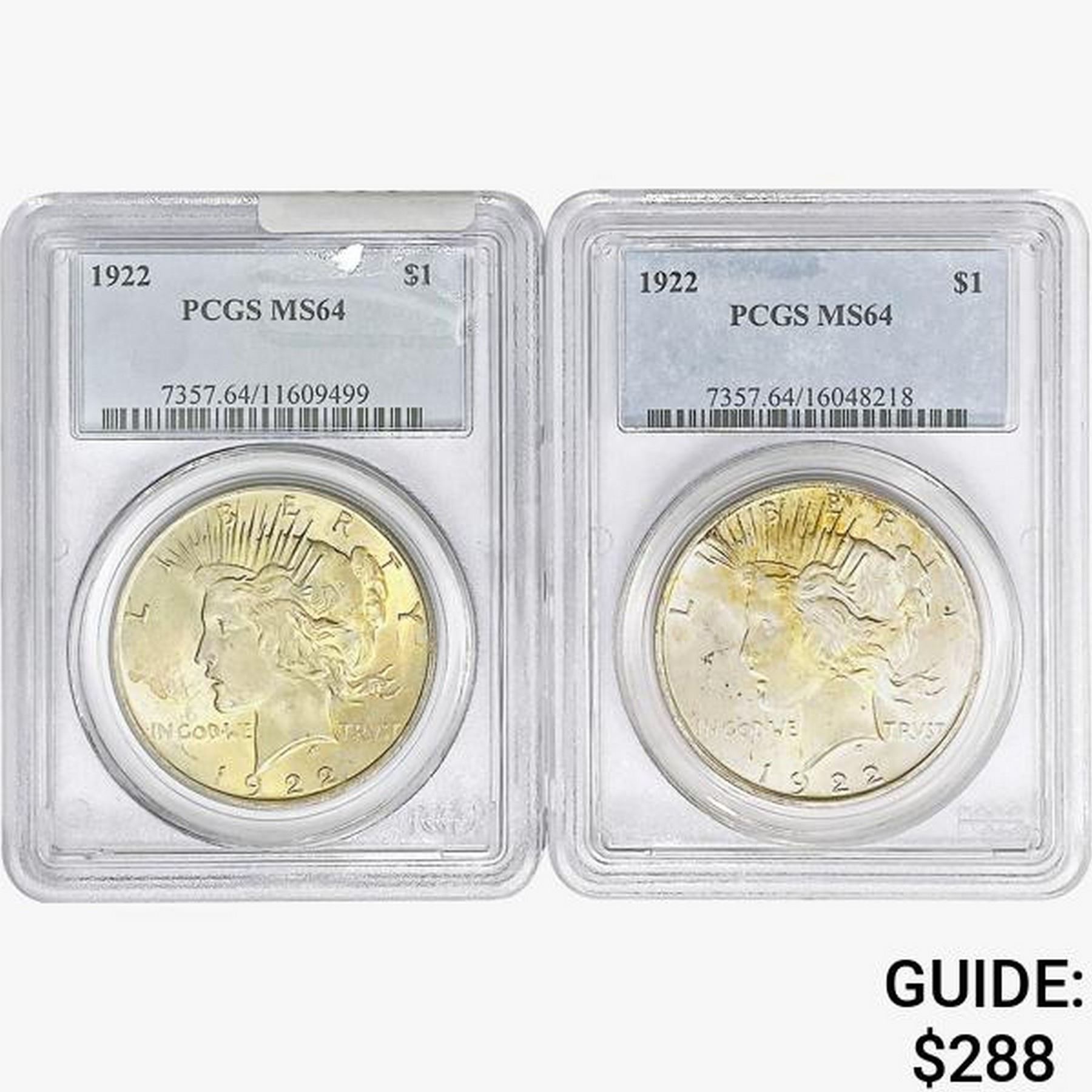[2]1922 Silver Peace Dollar PCGS MS64
