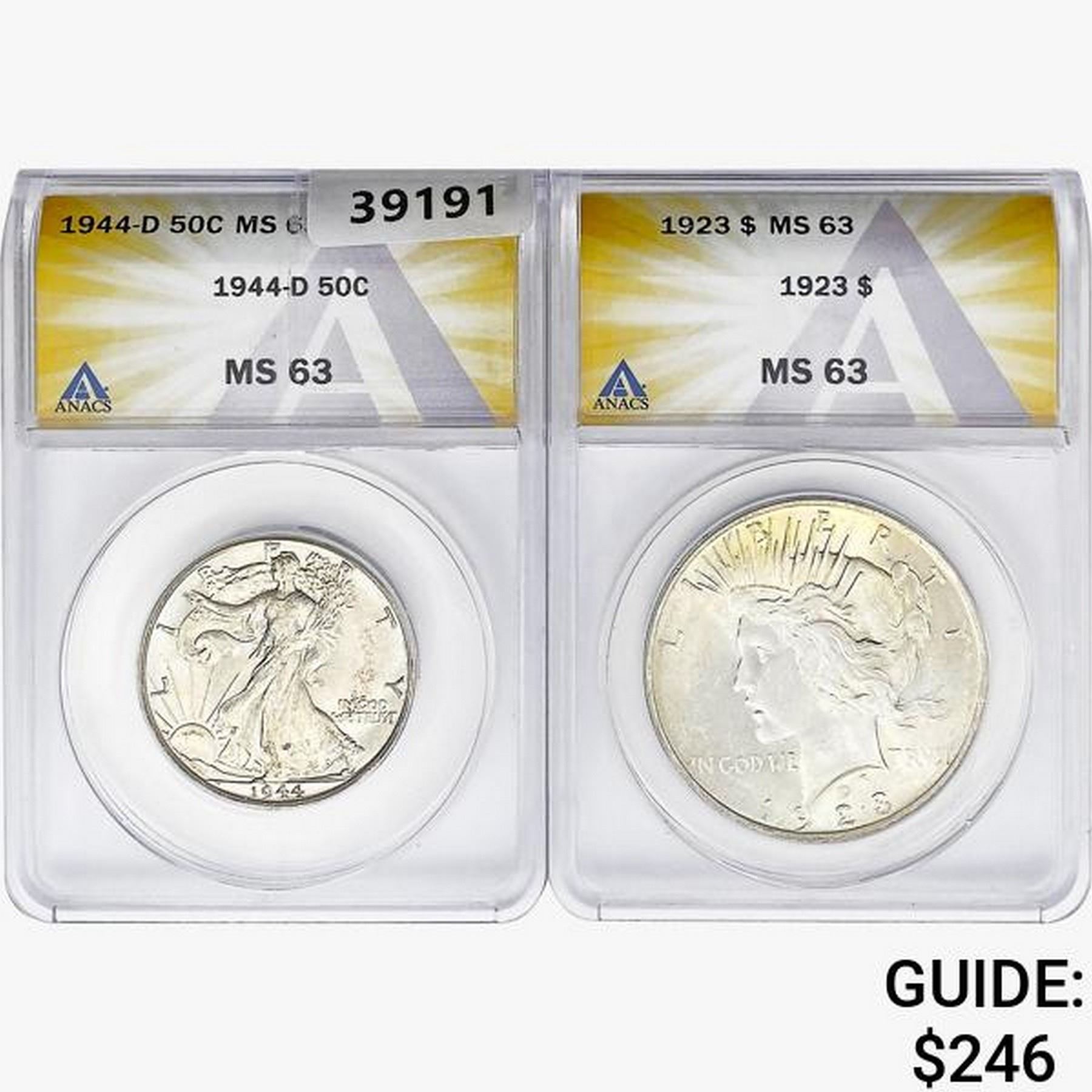 [2] 1923&1944-D 1 $1, 1 50C ANACS M63
