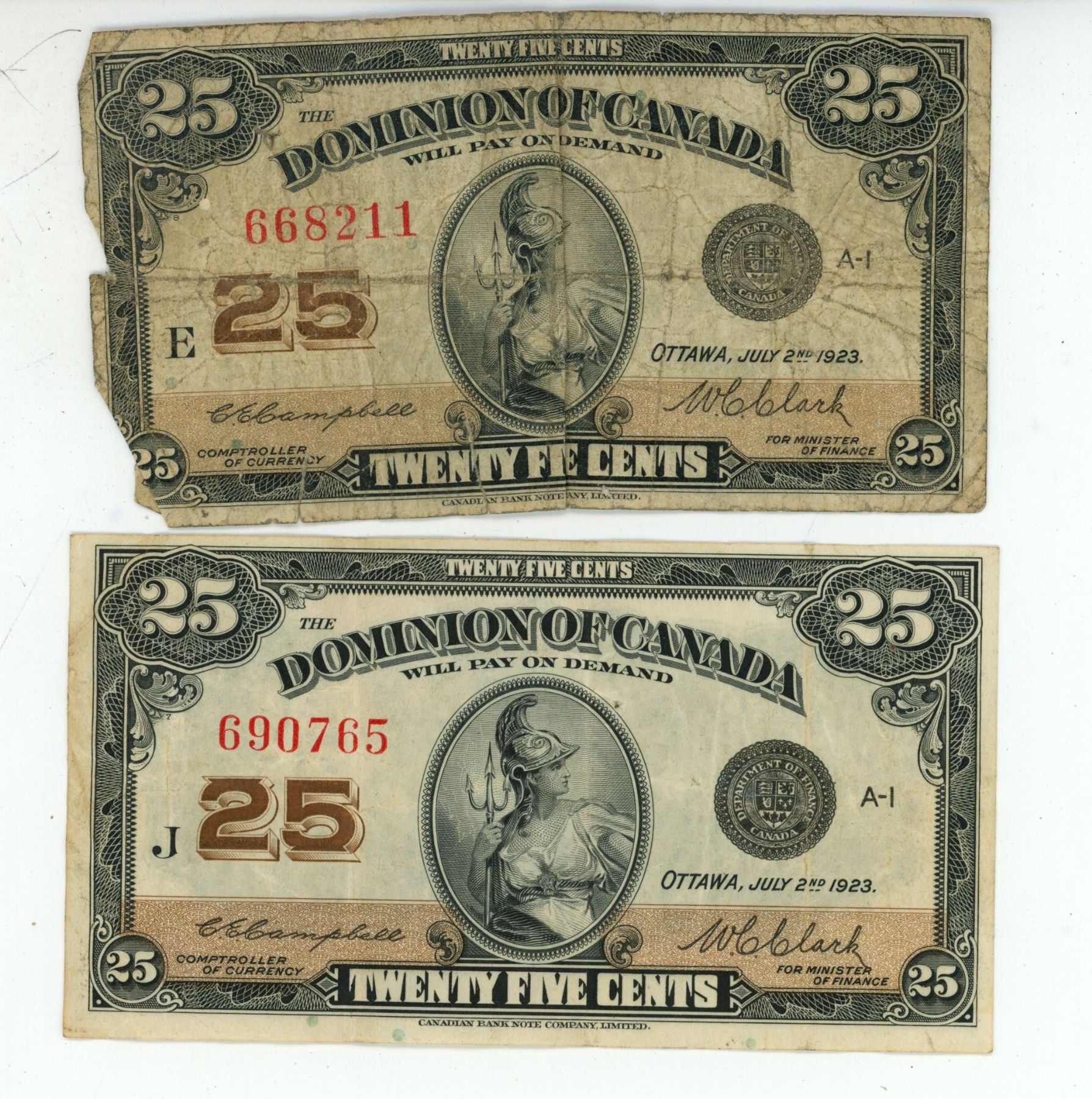 2 - 1923 Dominion of Canada, 25 cent shin plasters