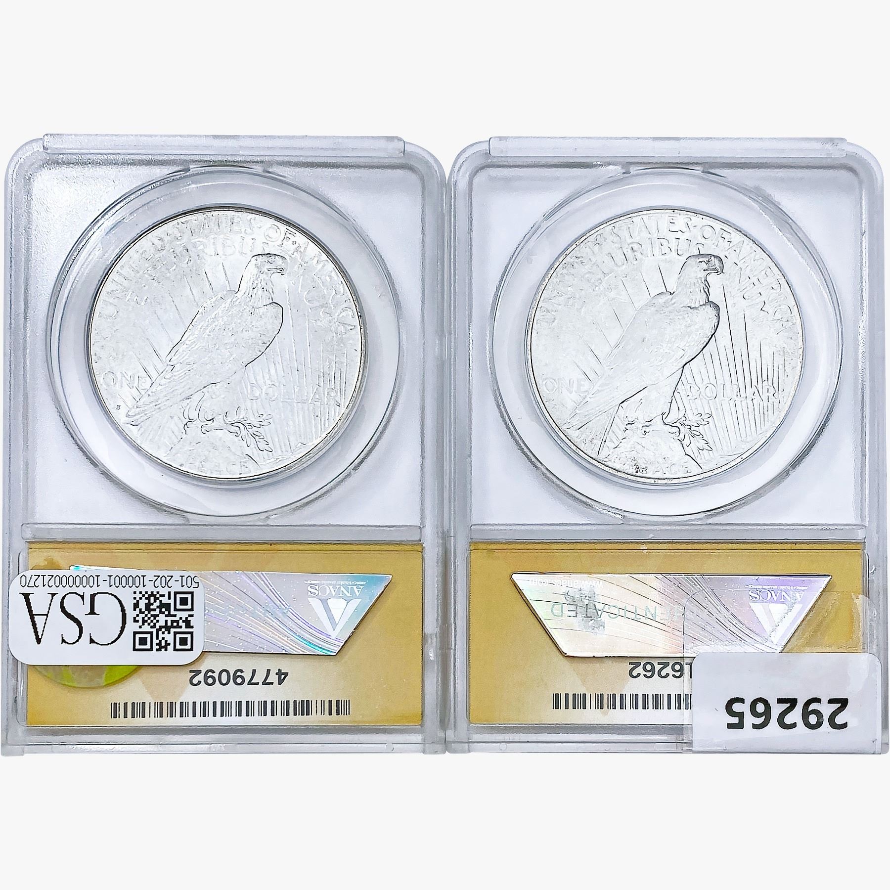 [2] 1923 Silver Peace Dollar ANACS MS62/63