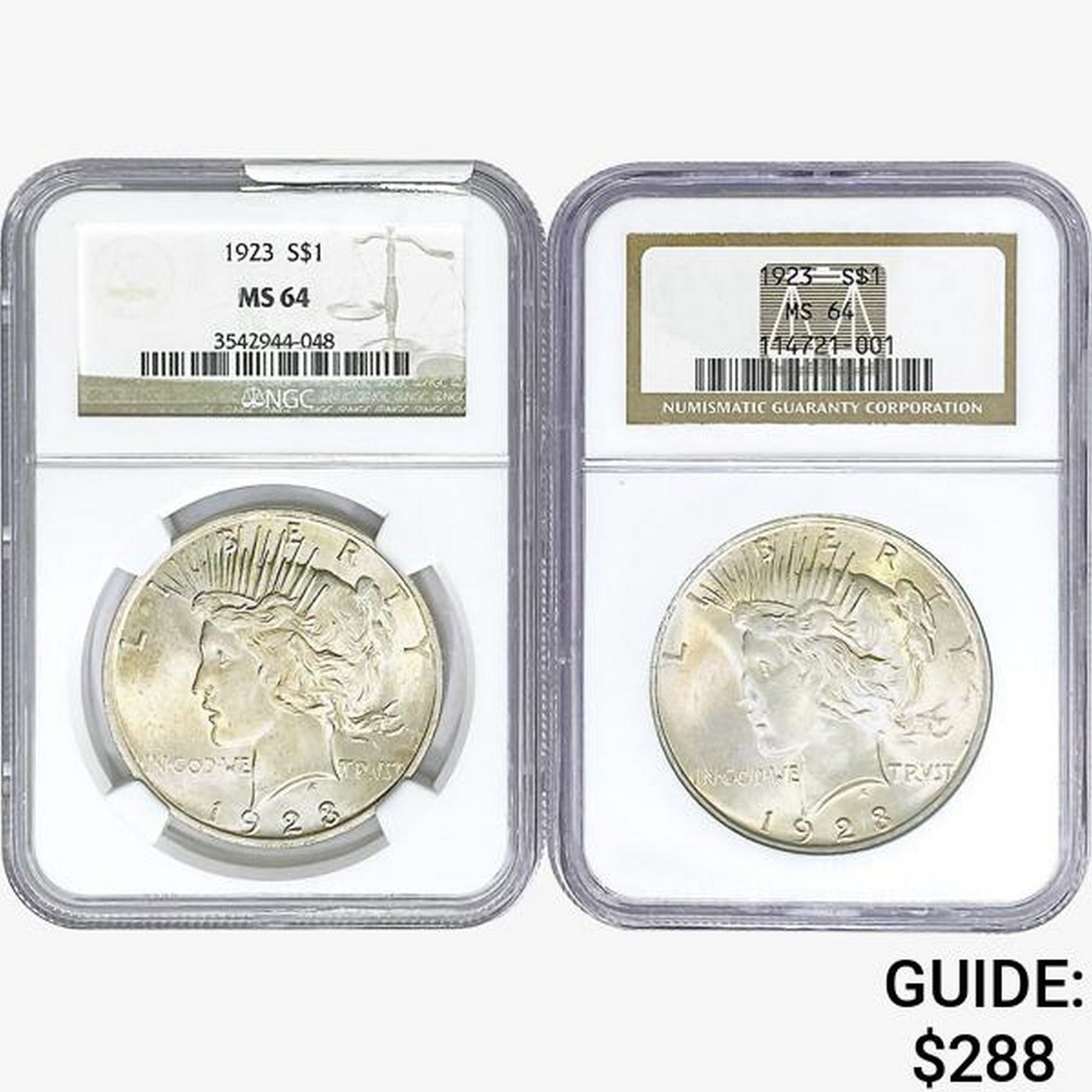 [2] 1923 Silver Peace Dollar NGC MS64