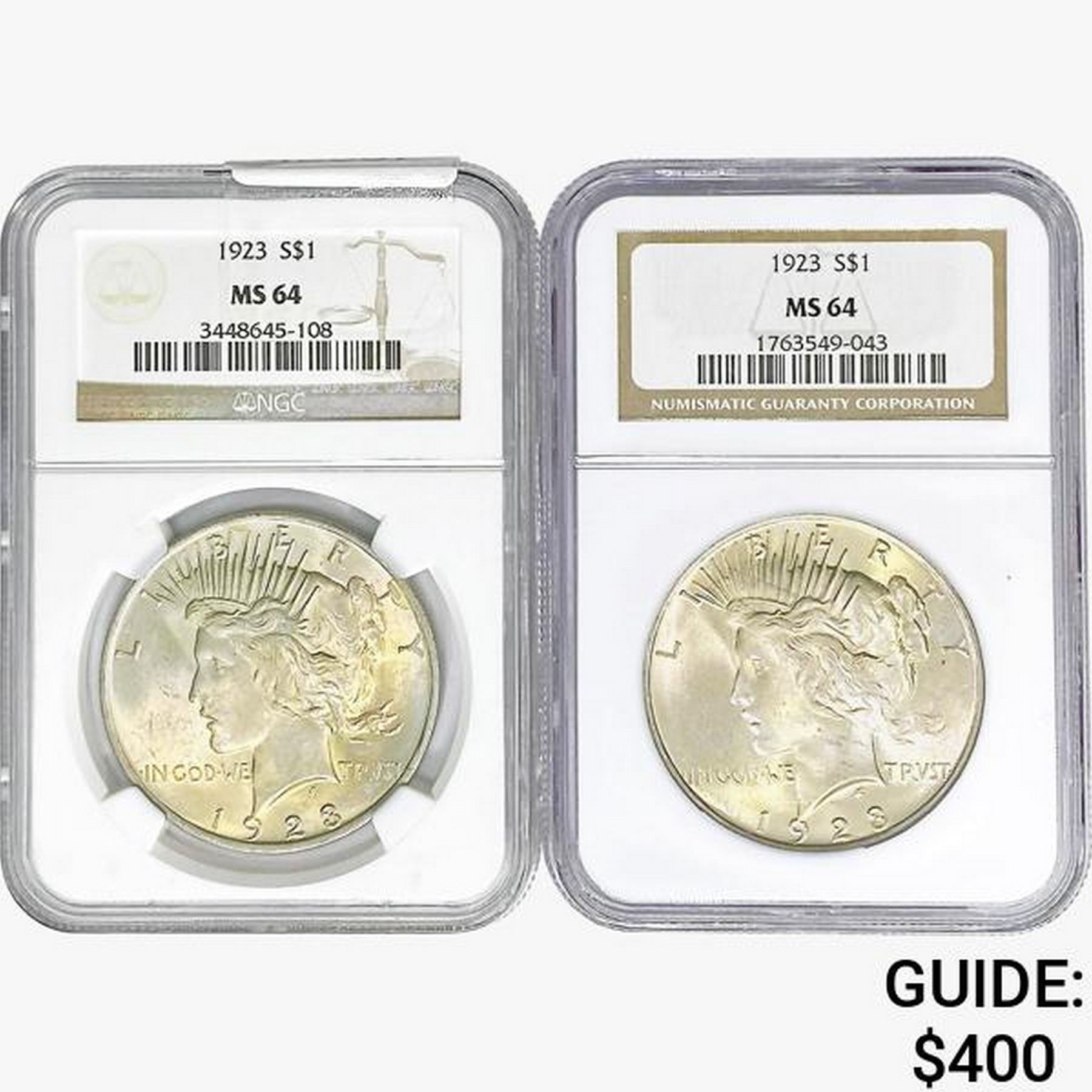 [2] 1923 Silver Peace Dollar NGC MS64