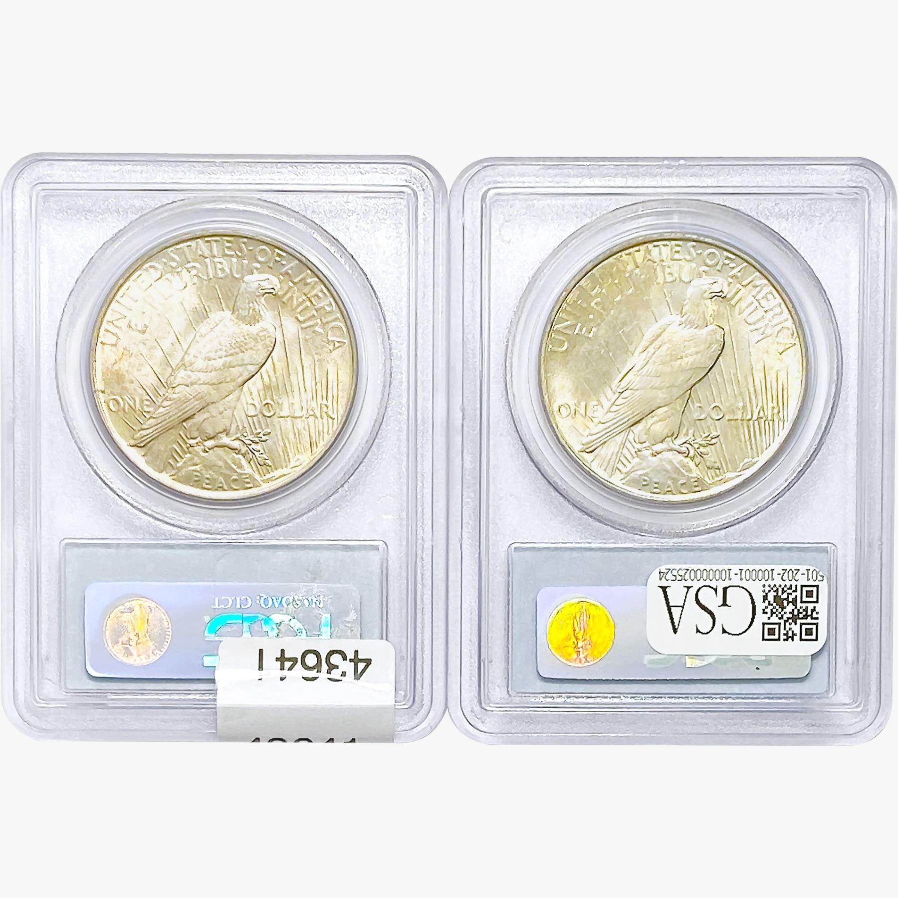 COINS AND CURRENCY LISTED IN GSA’S CATALOG AS GRADED AND ENCAPSULATED BY PCGS, NGC, ANACS, ICG, PCGS CURRENCY, PMG, PCGS BANKNOTE GRADING, CMC OR ANY OTHER THIRD-PARTY GRADING SERVICE ARE LIKEWISE SOLD “AS-IS” EXCEPT AS EXPRESSLY SET FORTH HEREIN. ALL THIRD-PARTY GRADING SERVICE GUARANTEES, INCLUDING AUTHENTICITY, ARE THE SOLE RESPONSIBILITY OF THE THIRD-PARTY GRADING SERVICE AND NOT WARRANTIES OR GUARANTEES OF GSA. BIDDERS SHOULD CONTACT THESE THIRD-PARTY GRADING SERVICES DIRECTLY WITH RESPECT TO ANY CLAIMS OR QUESTIONS THEY MAY HAVE CONCERNING THEIR GUARANTEES AND WARRANTIES. BIDDERS ACKNOWLEDGE AND AGREE THAT AUCTIONEER IS NOT BOUND BY OR LIABLE FOR ANY OPINION OR CERTIFICATION BY ANY THIRD-PARTY GRADING SERVICE. REMOVAL OF A PRODUCT FROM ITS PROTECTIVE CASING OR HOLDER OR ALTERATION OF ANY COIN HOLDER WAIVES ALL RIGHTS CONCERNING THE PRODUCT CONTAINED THEREIN.