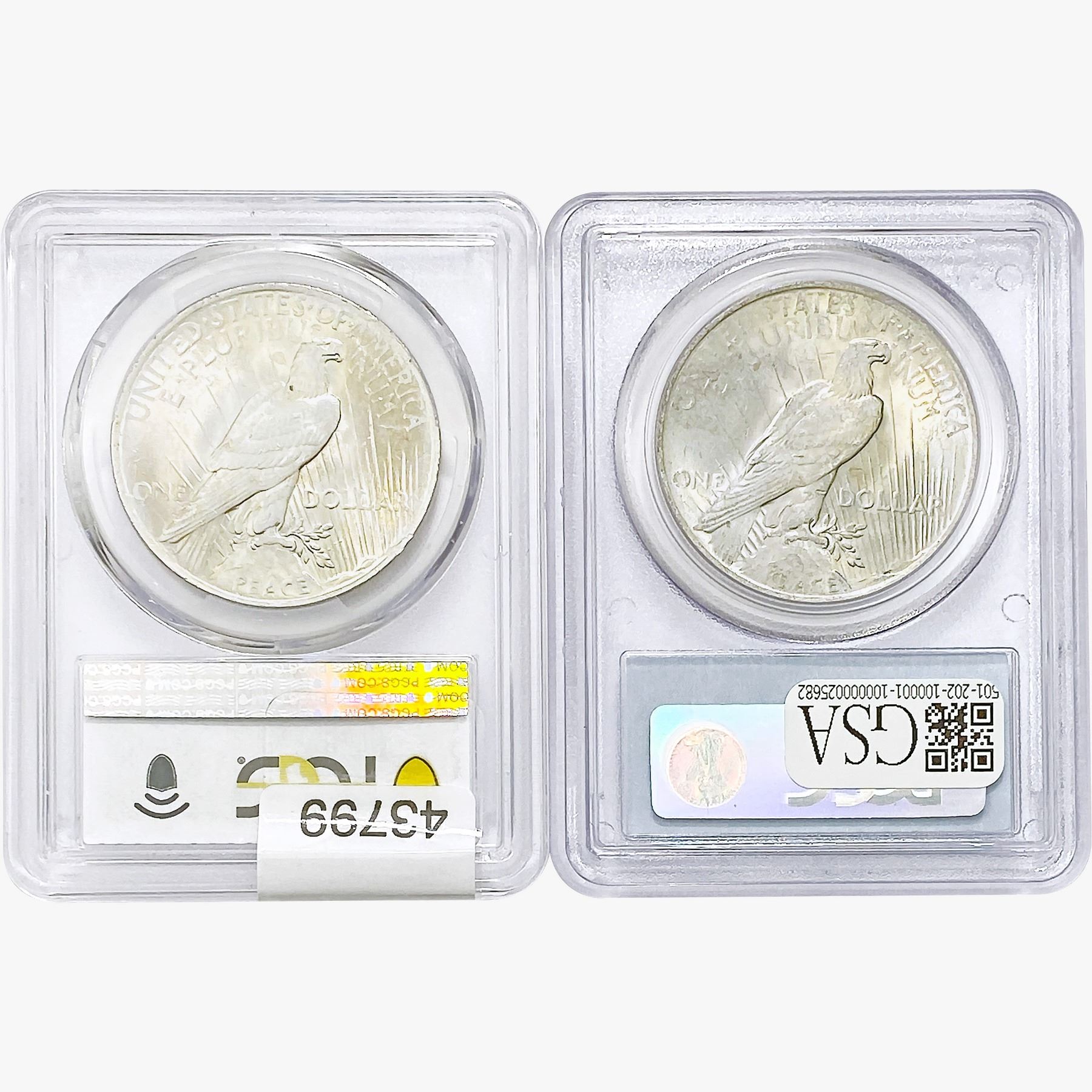 COINS AND CURRENCY LISTED IN GSA’S CATALOG AS GRADED AND ENCAPSULATED BY PCGS, NGC, ANACS, ICG, PCGS CURRENCY, PMG, PCGS BANKNOTE GRADING, CMC OR ANY OTHER THIRD-PARTY GRADING SERVICE ARE LIKEWISE SOLD “AS-IS” EXCEPT AS EXPRESSLY SET FORTH HEREIN. ALL THIRD-PARTY GRADING SERVICE GUARANTEES, INCLUDING AUTHENTICITY, ARE THE SOLE RESPONSIBILITY OF THE THIRD-PARTY GRADING SERVICE AND NOT WARRANTIES OR GUARANTEES OF GSA. BIDDERS SHOULD CONTACT THESE THIRD-PARTY GRADING SERVICES DIRECTLY WITH RESPECT TO ANY CLAIMS OR QUESTIONS THEY MAY HAVE CONCERNING THEIR GUARANTEES AND WARRANTIES. BIDDERS ACKNOWLEDGE AND AGREE THAT AUCTIONEER IS NOT BOUND BY OR LIABLE FOR ANY OPINION OR CERTIFICATION BY ANY THIRD-PARTY GRADING SERVICE. REMOVAL OF A PRODUCT FROM ITS PROTECTIVE CASING OR HOLDER OR ALTERATION OF ANY COIN HOLDER WAIVES ALL RIGHTS CONCERNING THE PRODUCT CONTAINED THEREIN.