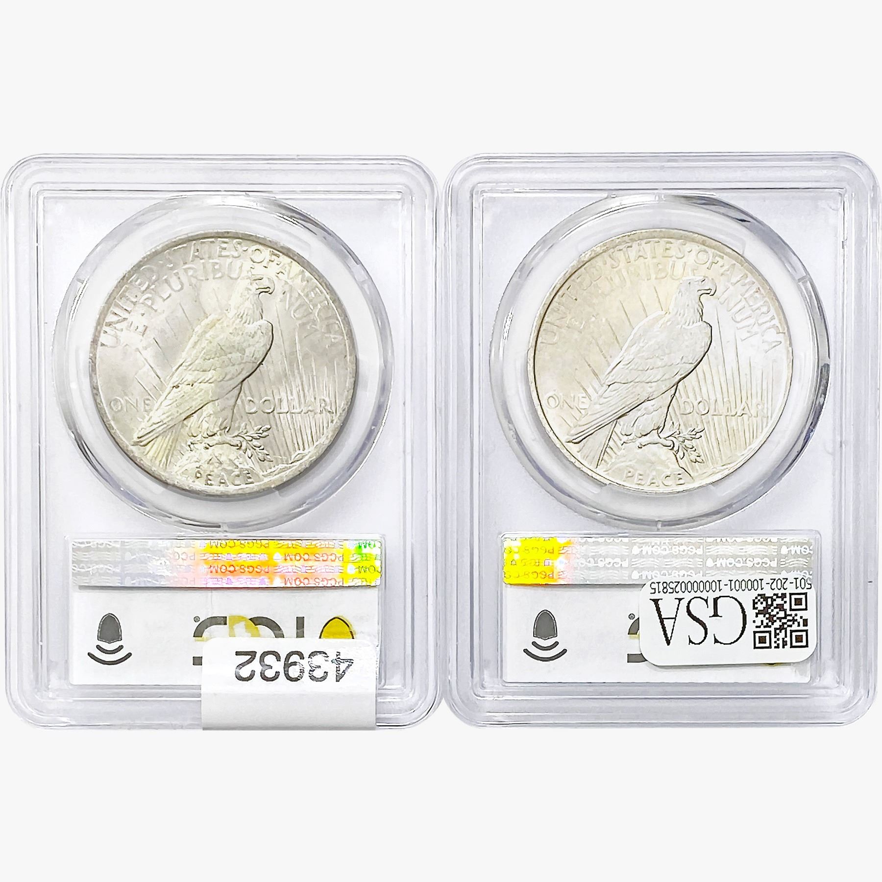 COINS AND CURRENCY LISTED IN GSA’S CATALOG AS GRADED AND ENCAPSULATED BY PCGS, NGC, ANACS, ICG, PCGS CURRENCY, PMG, PCGS BANKNOTE GRADING, CMC OR ANY OTHER THIRD-PARTY GRADING SERVICE ARE LIKEWISE SOLD “AS-IS” EXCEPT AS EXPRESSLY SET FORTH HEREIN. ALL THIRD-PARTY GRADING SERVICE GUARANTEES, INCLUDING AUTHENTICITY, ARE THE SOLE RESPONSIBILITY OF THE THIRD-PARTY GRADING SERVICE AND NOT WARRANTIES OR GUARANTEES OF GSA. BIDDERS SHOULD CONTACT THESE THIRD-PARTY GRADING SERVICES DIRECTLY WITH RESPECT TO ANY CLAIMS OR QUESTIONS THEY MAY HAVE CONCERNING THEIR GUARANTEES AND WARRANTIES. BIDDERS ACKNOWLEDGE AND AGREE THAT AUCTIONEER IS NOT BOUND BY OR LIABLE FOR ANY OPINION OR CERTIFICATION BY ANY THIRD-PARTY GRADING SERVICE. REMOVAL OF A PRODUCT FROM ITS PROTECTIVE CASING OR HOLDER OR ALTERATION OF ANY COIN HOLDER WAIVES ALL RIGHTS CONCERNING THE PRODUCT CONTAINED THEREIN.