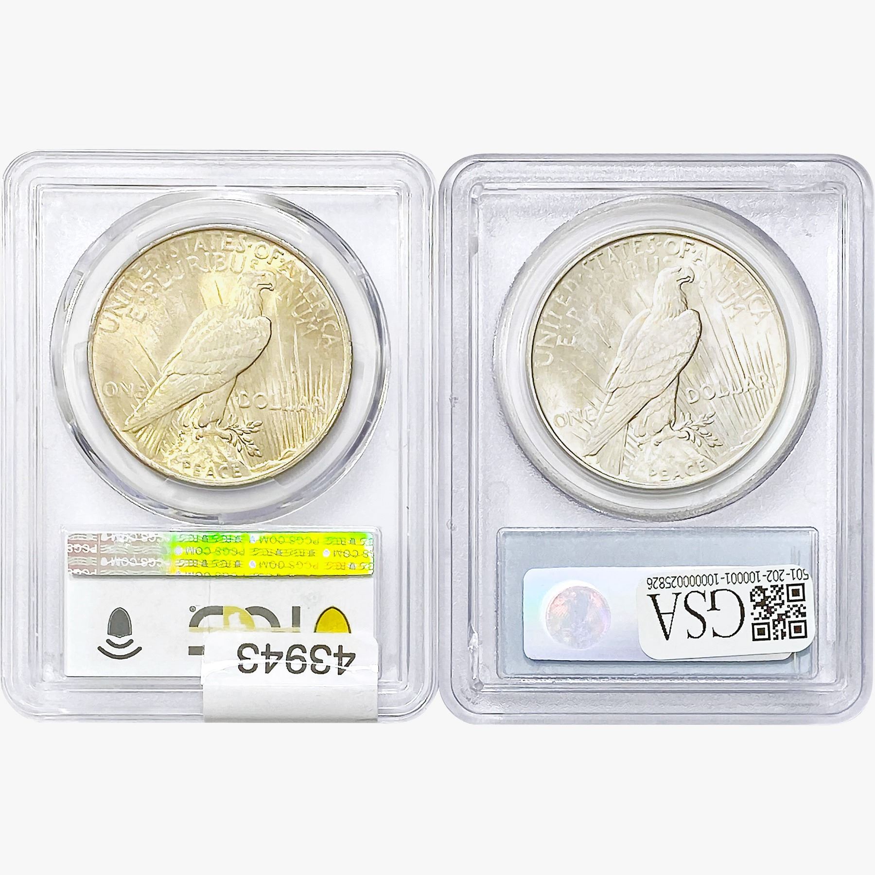 COINS AND CURRENCY LISTED IN GSA’S CATALOG AS GRADED AND ENCAPSULATED BY PCGS, NGC, ANACS, ICG, PCGS CURRENCY, PMG, PCGS BANKNOTE GRADING, CMC OR ANY OTHER THIRD-PARTY GRADING SERVICE ARE LIKEWISE SOLD “AS-IS” EXCEPT AS EXPRESSLY SET FORTH HEREIN. ALL THIRD-PARTY GRADING SERVICE GUARANTEES, INCLUDING AUTHENTICITY, ARE THE SOLE RESPONSIBILITY OF THE THIRD-PARTY GRADING SERVICE AND NOT WARRANTIES OR GUARANTEES OF GSA. BIDDERS SHOULD CONTACT THESE THIRD-PARTY GRADING SERVICES DIRECTLY WITH RESPECT TO ANY CLAIMS OR QUESTIONS THEY MAY HAVE CONCERNING THEIR GUARANTEES AND WARRANTIES. BIDDERS ACKNOWLEDGE AND AGREE THAT AUCTIONEER IS NOT BOUND BY OR LIABLE FOR ANY OPINION OR CERTIFICATION BY ANY THIRD-PARTY GRADING SERVICE. REMOVAL OF A PRODUCT FROM ITS PROTECTIVE CASING OR HOLDER OR ALTERATION OF ANY COIN HOLDER WAIVES ALL RIGHTS CONCERNING THE PRODUCT CONTAINED THEREIN.