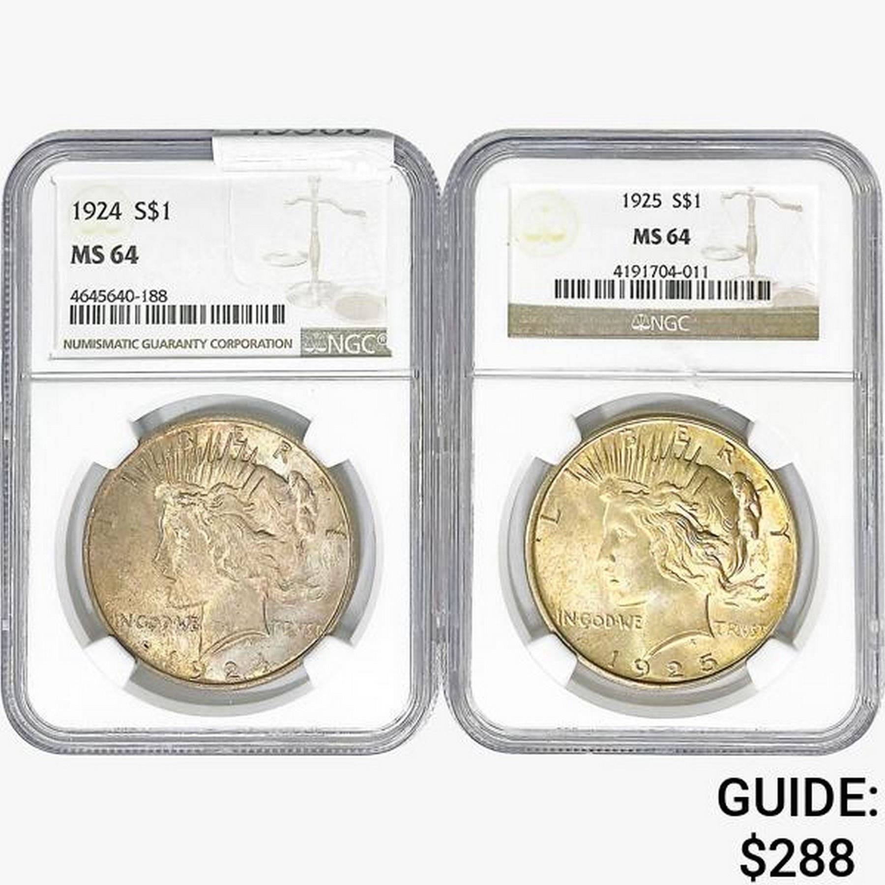 [2] 1924 & 1924 Silver Peace Dollar NGC MS64