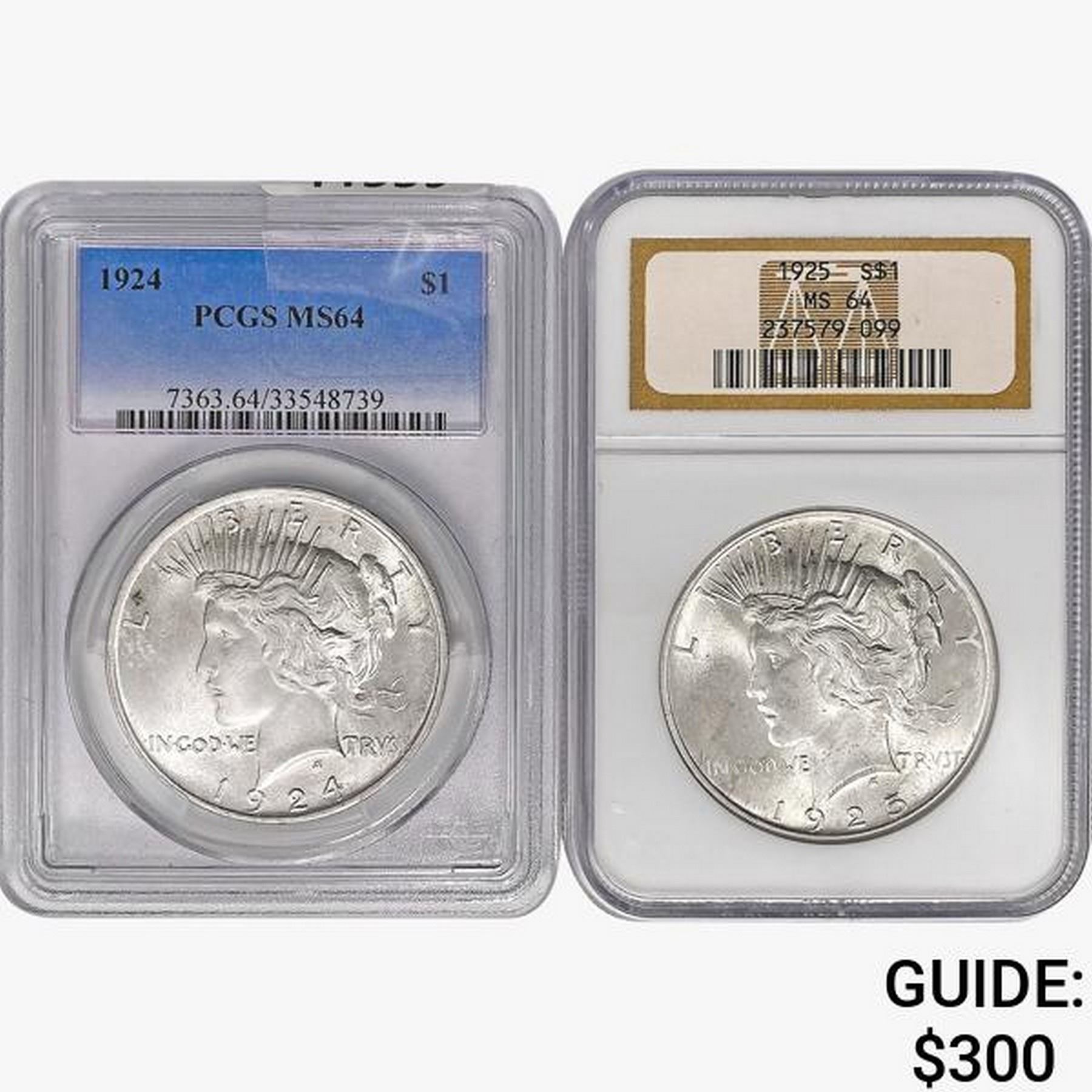 [2] 1924-1925 Silver Peace Dollar NGC,PCGS MS64