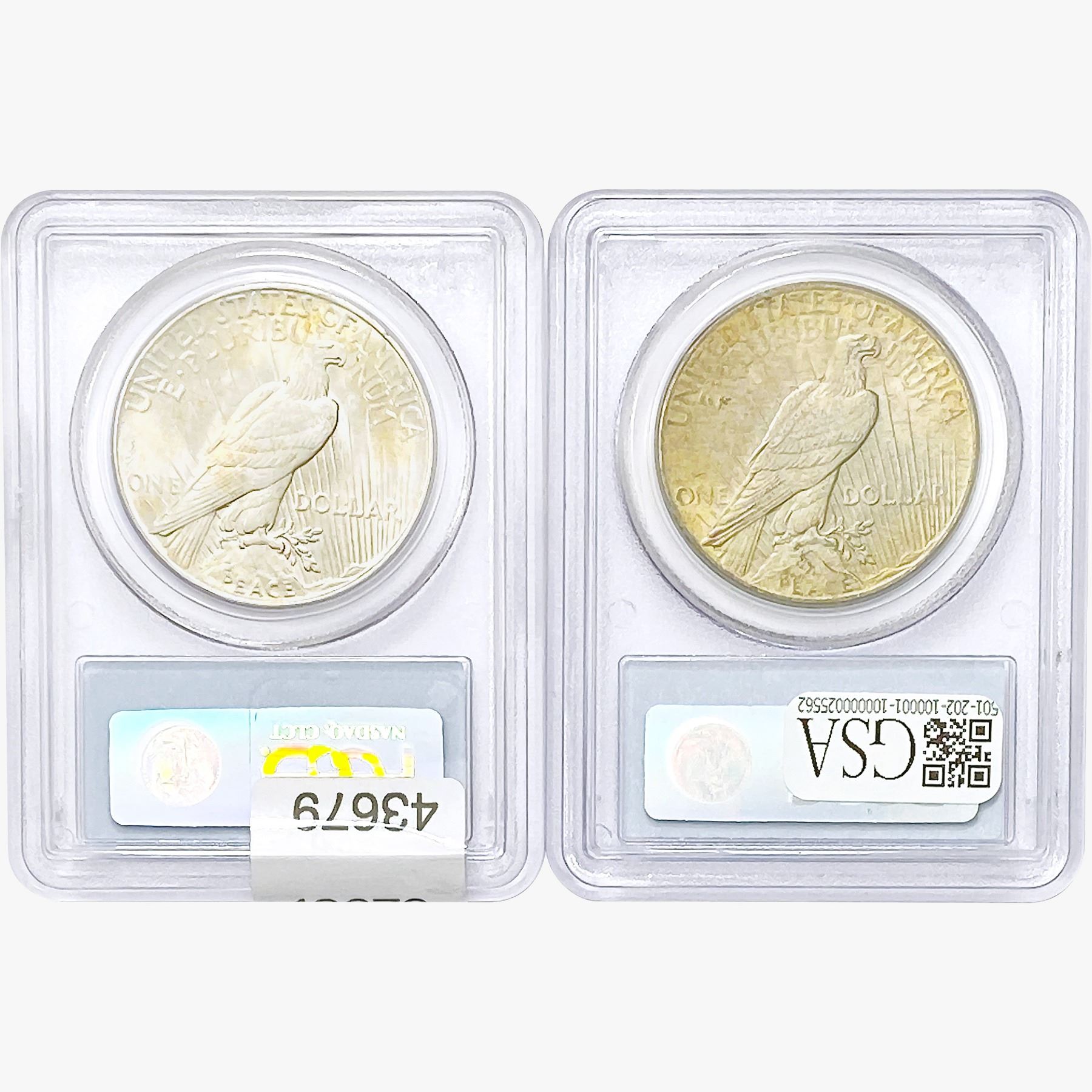 COINS AND CURRENCY LISTED IN GSA’S CATALOG AS GRADED AND ENCAPSULATED BY PCGS, NGC, ANACS, ICG, PCGS CURRENCY, PMG, PCGS BANKNOTE GRADING, CMC OR ANY OTHER THIRD-PARTY GRADING SERVICE ARE LIKEWISE SOLD “AS-IS” EXCEPT AS EXPRESSLY SET FORTH HEREIN. ALL THIRD-PARTY GRADING SERVICE GUARANTEES, INCLUDING AUTHENTICITY, ARE THE SOLE RESPONSIBILITY OF THE THIRD-PARTY GRADING SERVICE AND NOT WARRANTIES OR GUARANTEES OF GSA. BIDDERS SHOULD CONTACT THESE THIRD-PARTY GRADING SERVICES DIRECTLY WITH RESPECT TO ANY CLAIMS OR QUESTIONS THEY MAY HAVE CONCERNING THEIR GUARANTEES AND WARRANTIES. BIDDERS ACKNOWLEDGE AND AGREE THAT AUCTIONEER IS NOT BOUND BY OR LIABLE FOR ANY OPINION OR CERTIFICATION BY ANY THIRD-PARTY GRADING SERVICE. REMOVAL OF A PRODUCT FROM ITS PROTECTIVE CASING OR HOLDER OR ALTERATION OF ANY COIN HOLDER WAIVES ALL RIGHTS CONCERNING THE PRODUCT CONTAINED THEREIN.