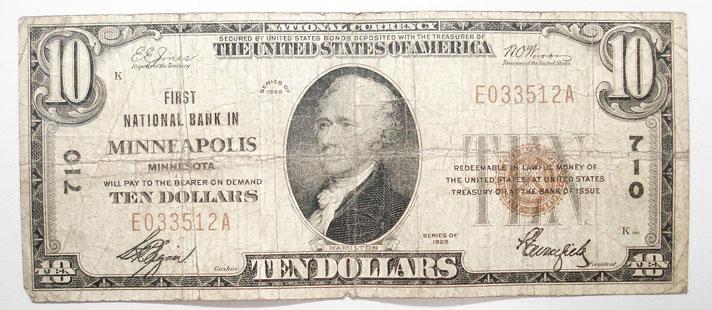 2 1929 $10 Nationals Minneapolis VG and Cleveland Fine