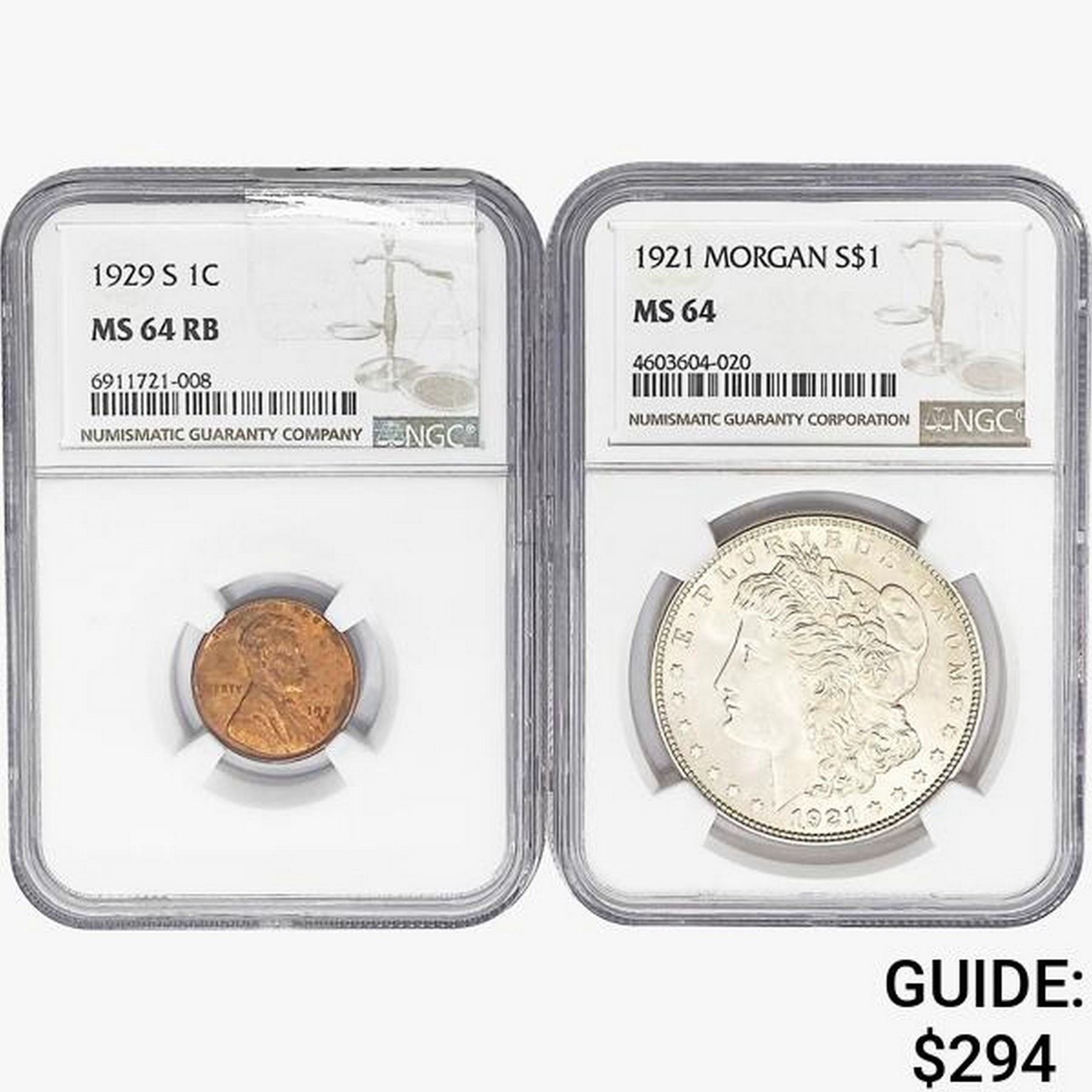 [2] 1929-S&1921 1 1C, 1 $1 NGC MS64