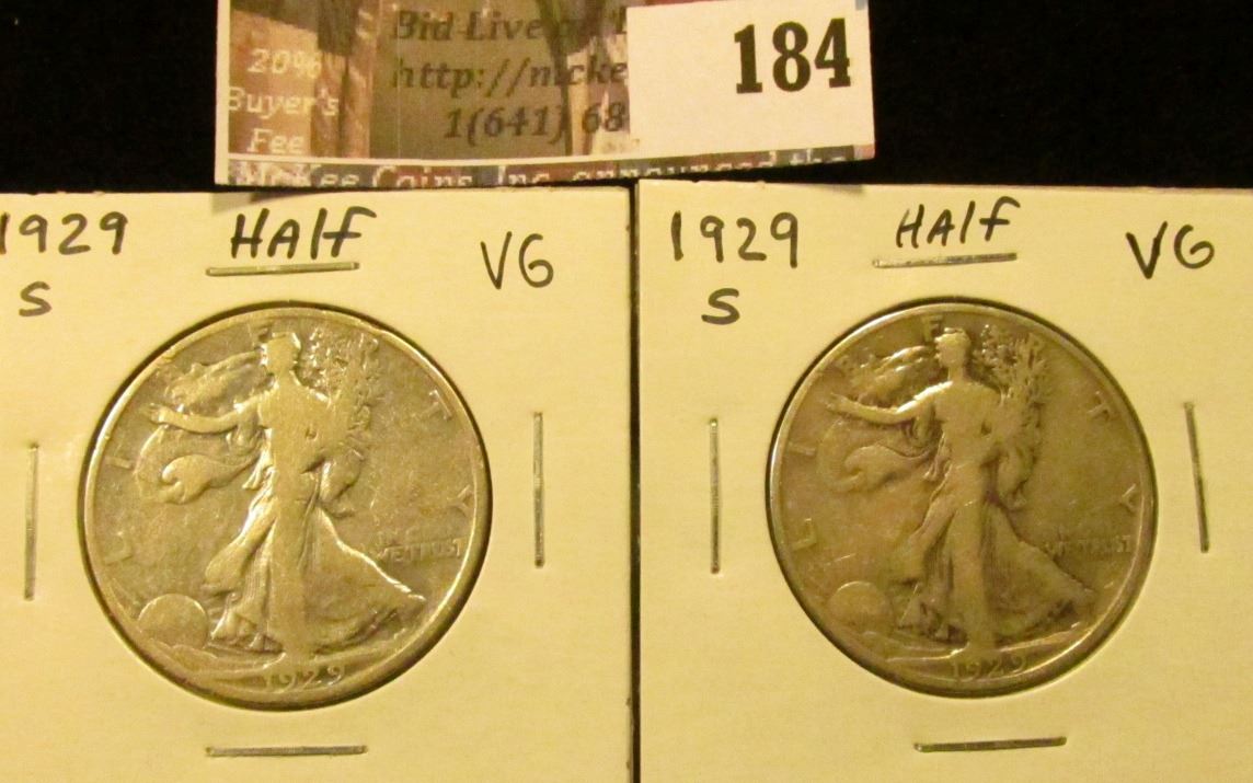 (2) 1929 S Walking Liberty Half Dollars, both VG.