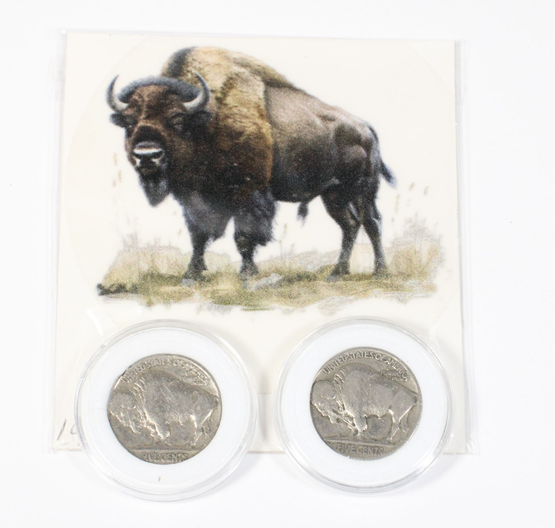 2 1930 BUFFALO NICKELS- USA- NOT SILVER, WITH CARD