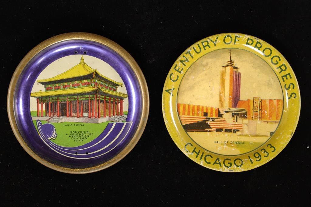 EACH MEASURES APPROX. 4". ONE OF THE PLATES DOES HAVE 2 SMALL HOLES ON THE TOP AND BOTTOM.