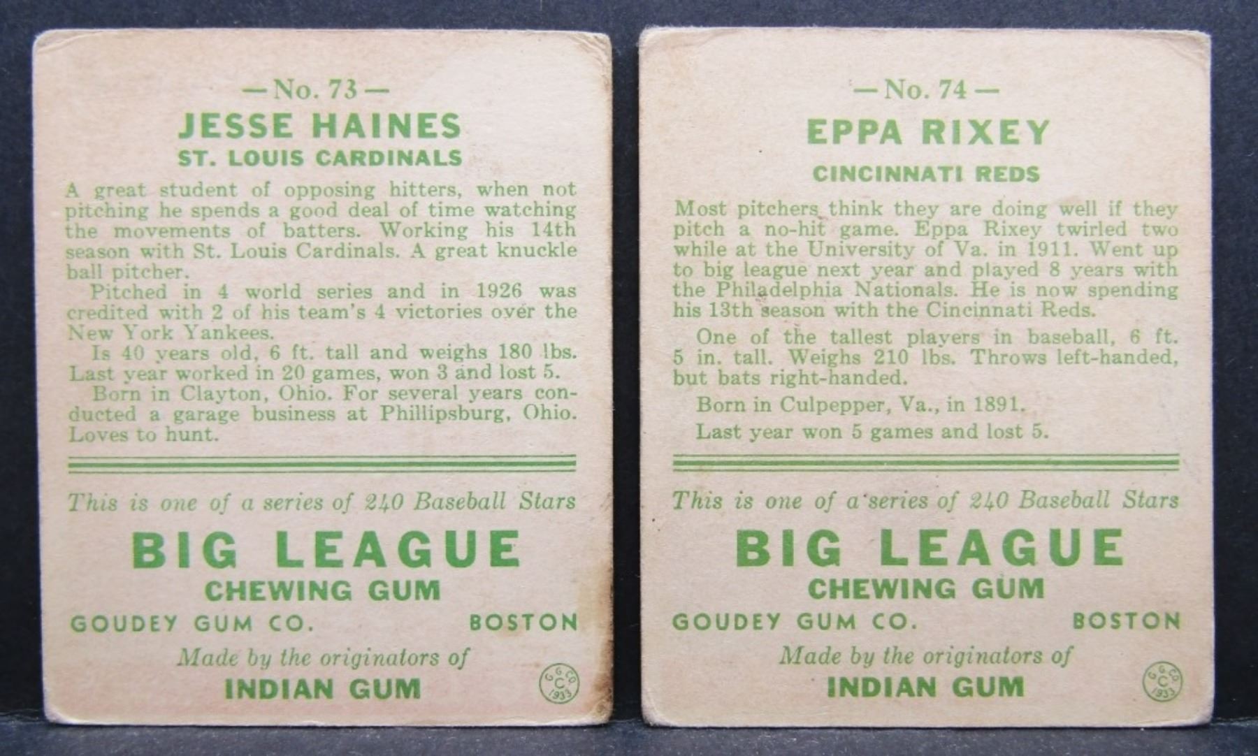 #73 HAINES & #74 RIXEY - TAPE STAINES / NO CREASES