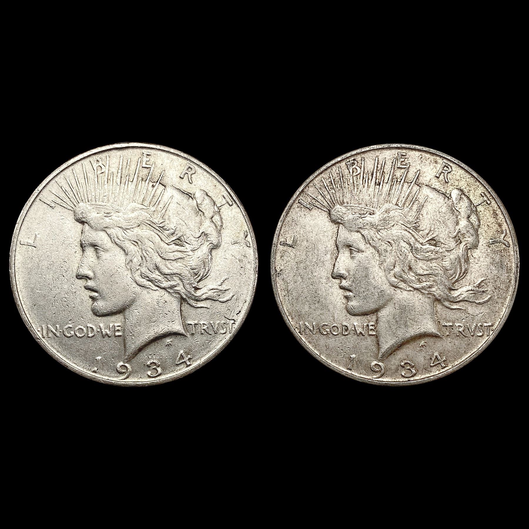 [2] 1934-D US Silver Peace Dollars [2 Coins] HIGH GRADE