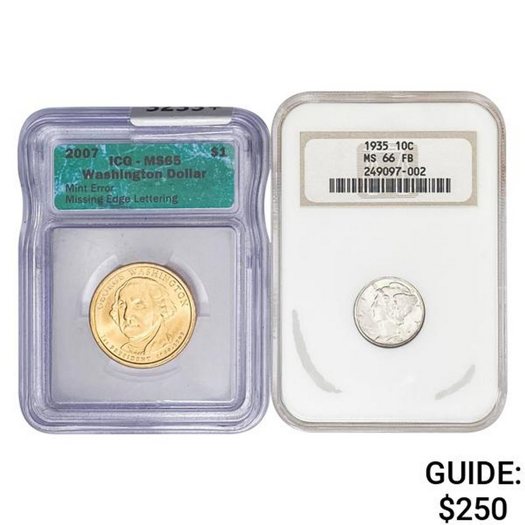 [2] 1935&2007 1 10C, 1 $1 Commem. NGC/ICG MS